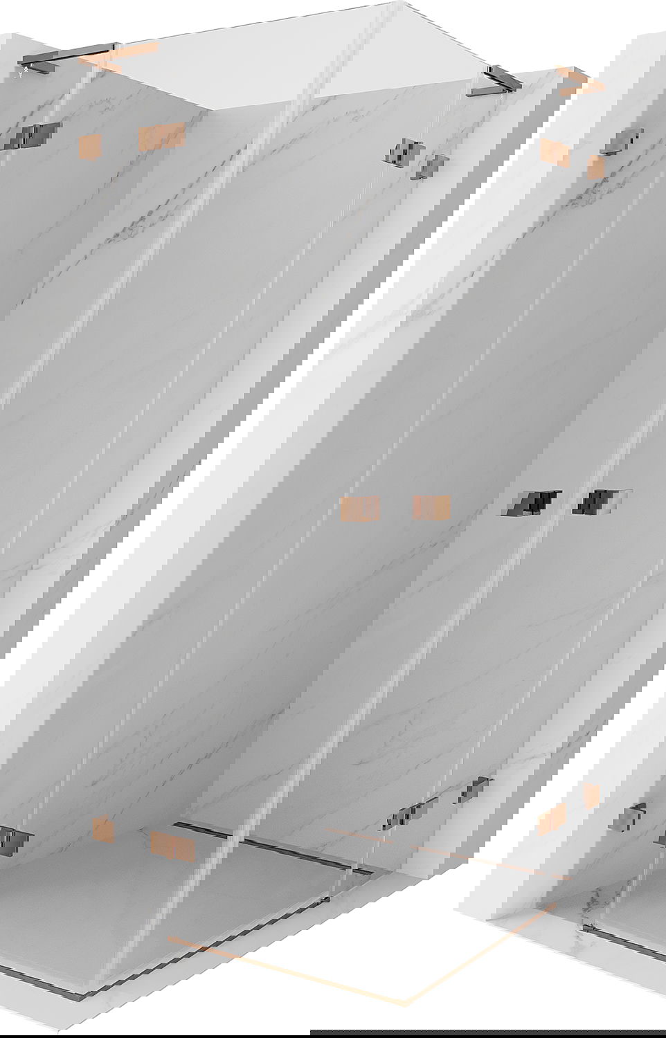 Svorky a závesy boli vyrobené z veľmi odolnej mosadze a navyše vytvárajú zarovnanú tabuľu skla. Je to vynikajúci výber, ktorý spája eleganciu, trvanlivosť a moderný dizajn. Vďaka takýmto riešeniam sprcha získa na estetike a zároveň uľahčujú udržiavanie čistoty.