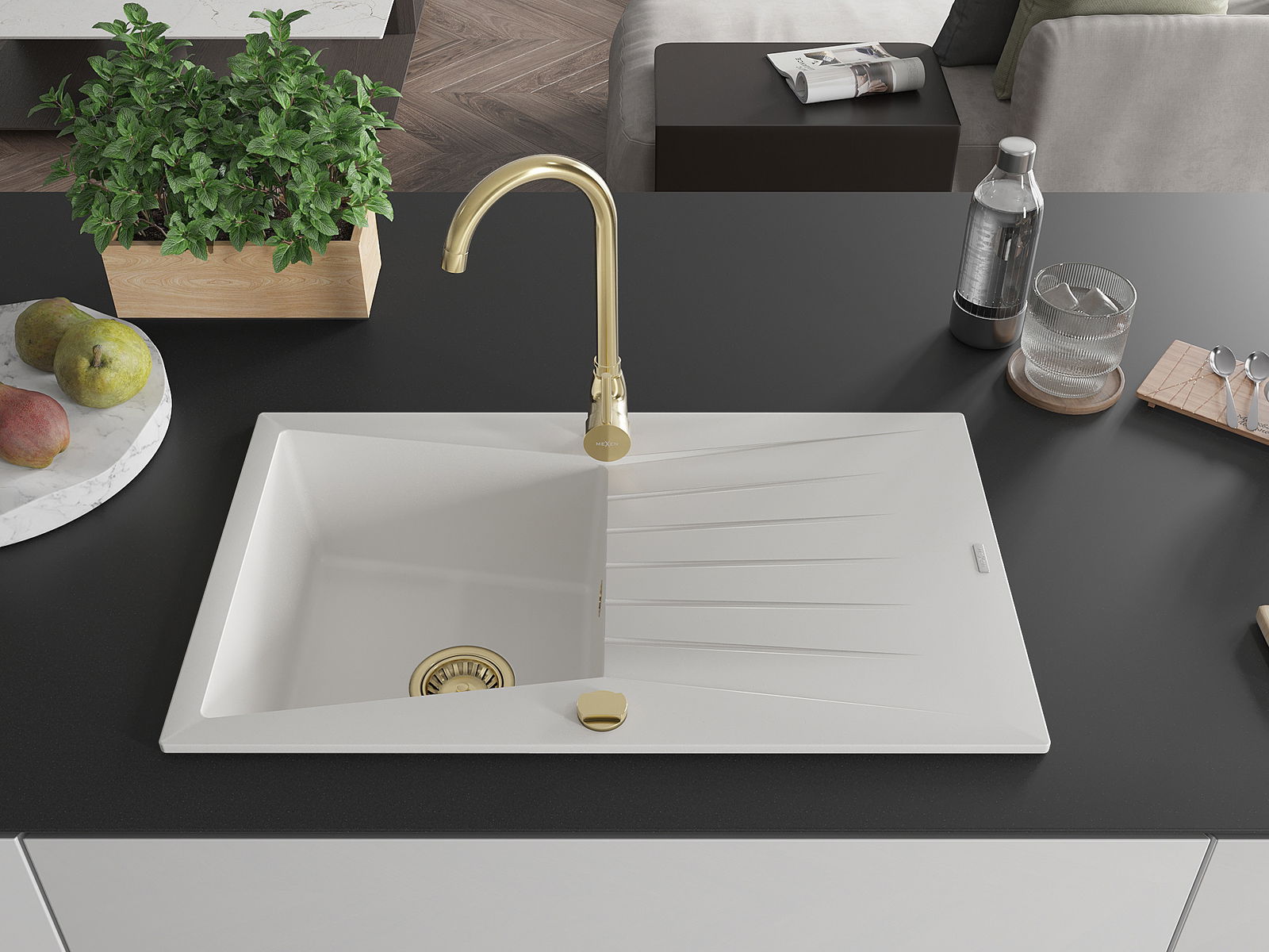 Povrch umývadla je odolný voči škvrnám a sfarbeniu, vďaka čomu sa ľahko čistí a zachováva si svoju farbu po dlhú dobu. Estetický a prakticky dopĺňajúci každú kuchyňu.
