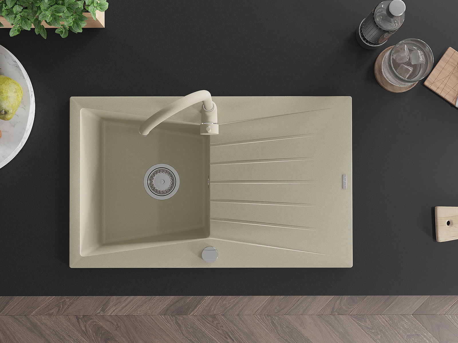 Mexen Cesar jednovaňový granulový drez s odkvapkávacou plochou a kuchynskou batériou Telma, béžový - 6514-69-670200-69