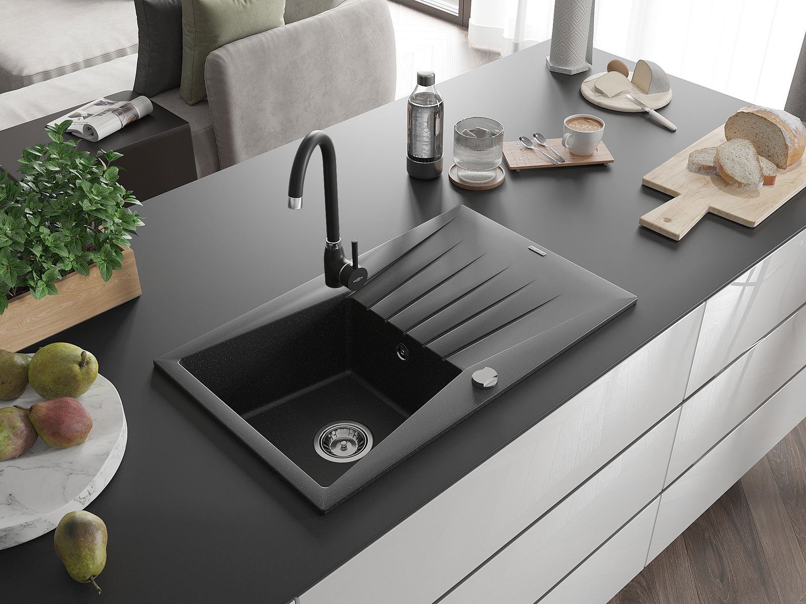 Povrch umývadla je odolný voči škvrnám a sfarbeniu, vďaka čomu sa ľahko čistí a zachováva si svoju farbu po dlhú dobu. Estetický a prakticky dopĺňajúci každú kuchyňu.