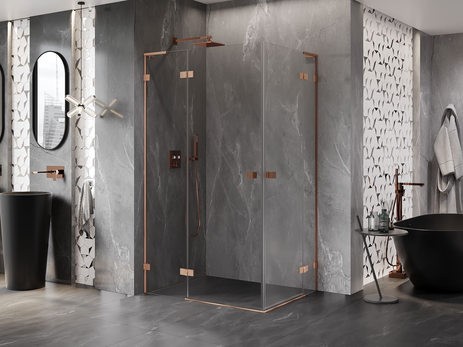 Mexen Lunar L Duo sprchový kút výklopný ľavý 105 x 85 cm, transparentný, kartáčovaná meď - 834L-105L-085P-65-00