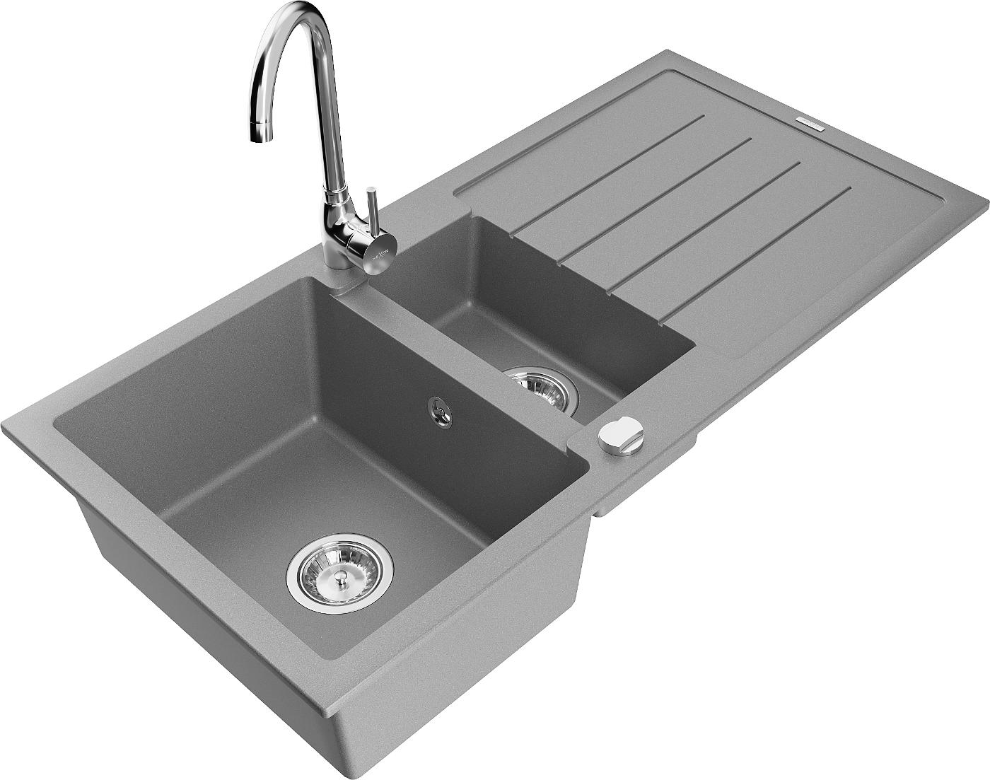 Mexen Andres 1,5-komorový granitový drez s odkvapkávačom a kuchynskou batériou Telma, sivý - 6515-71-670200-00