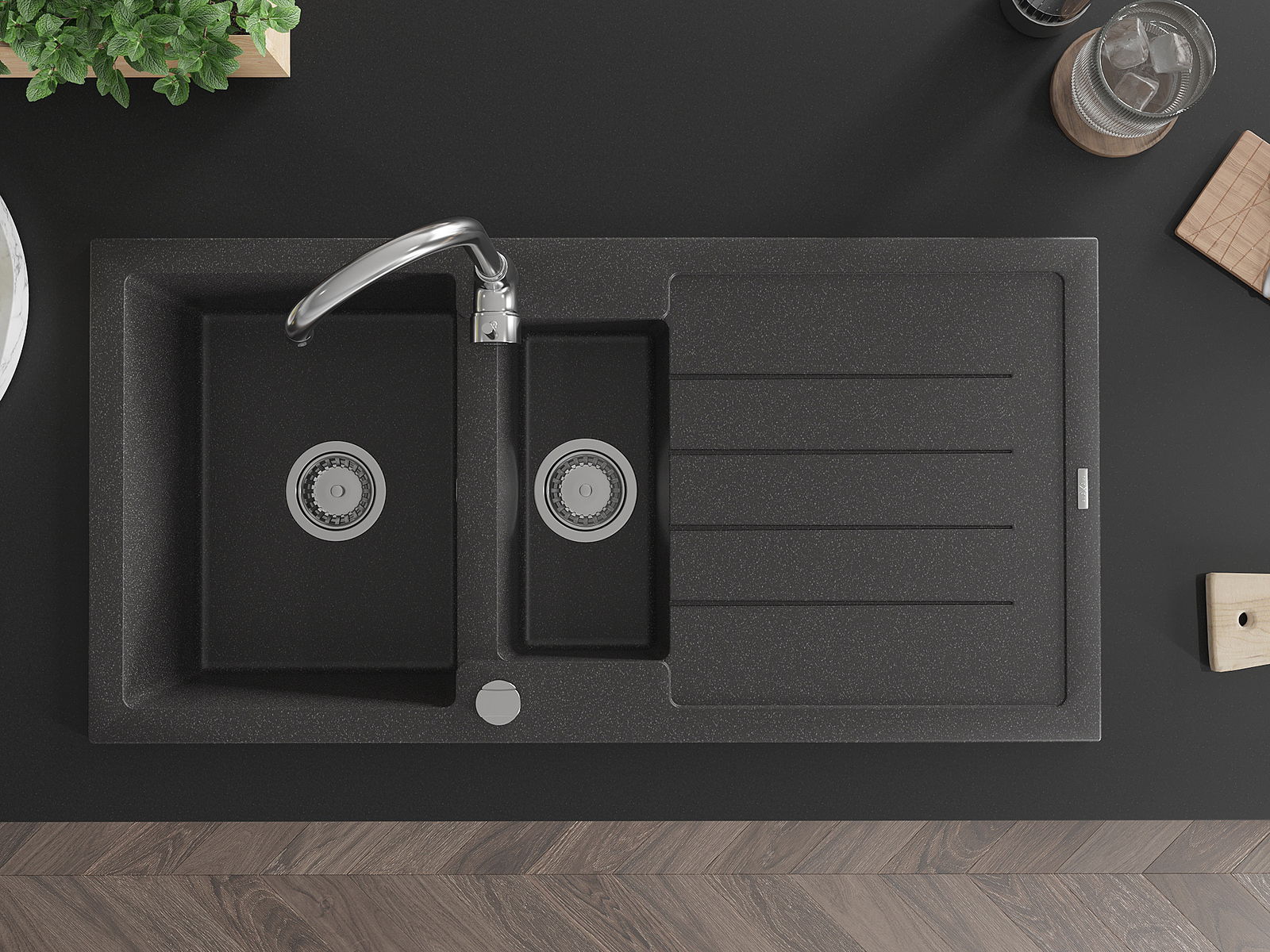 Povrch umývadla je odolný voči škvrnám a sfarbeniu, vďaka čomu sa ľahko čistí a zachováva si svoju farbu po dlhú dobu. Estetický a prakticky dopĺňajúci každú kuchyňu.