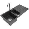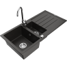 Mexen Andres granitový drez s 1,5-komorou s odkvapkávačom a kuchynskou batériou Telma, čierny - 6515-77-670200-00