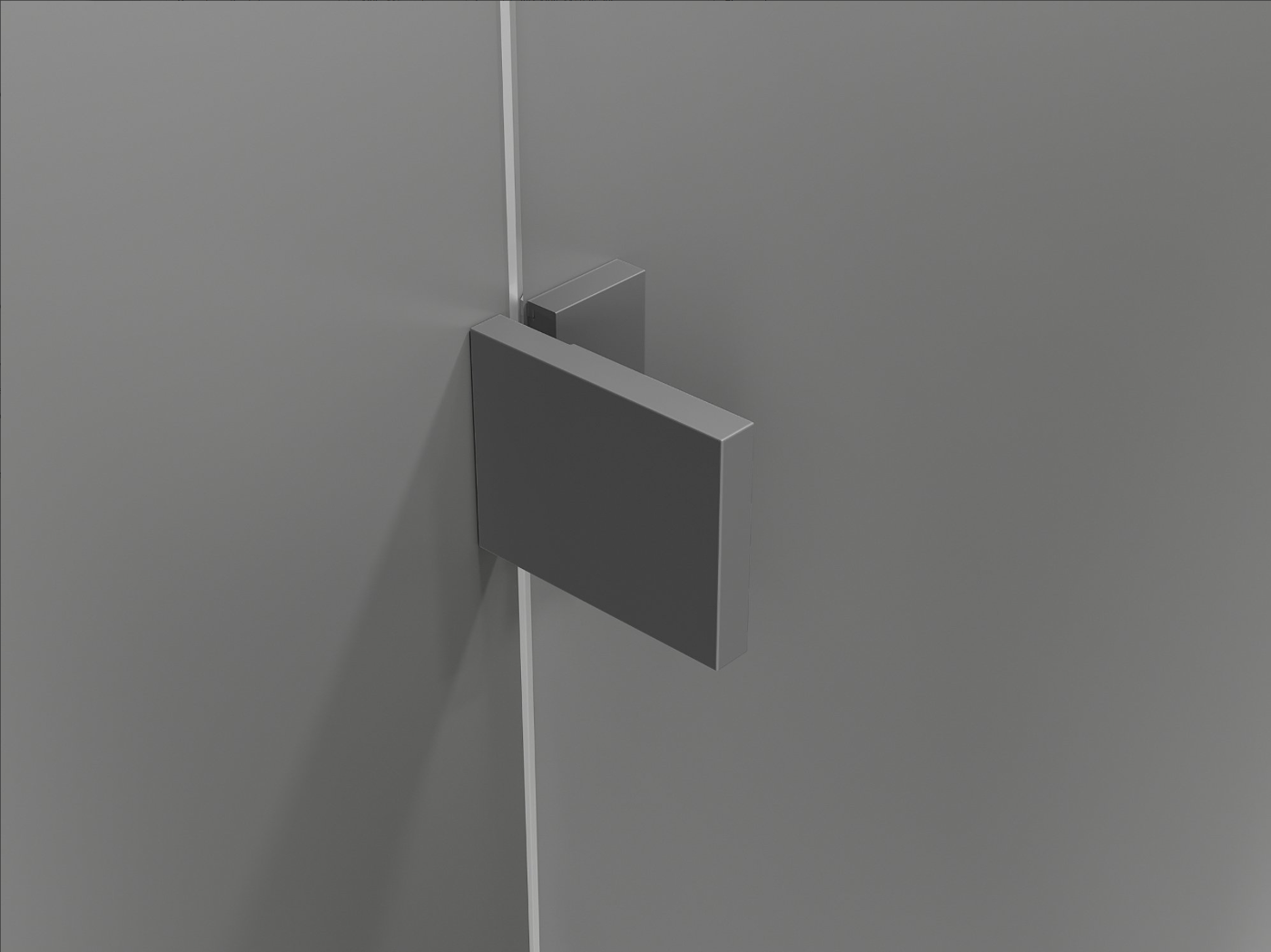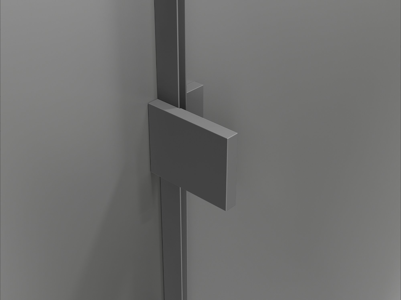Praktická a pohodlná rukoväť je vyrobená z odolného a pevného kovu. Moderný tvar v kombinácii s povrchovou úpravou prispôsobenou farbe profilov dodáva celku moderný a štýlový vzhľad, zdôrazňujúc estetiku každej kúpeľne.
