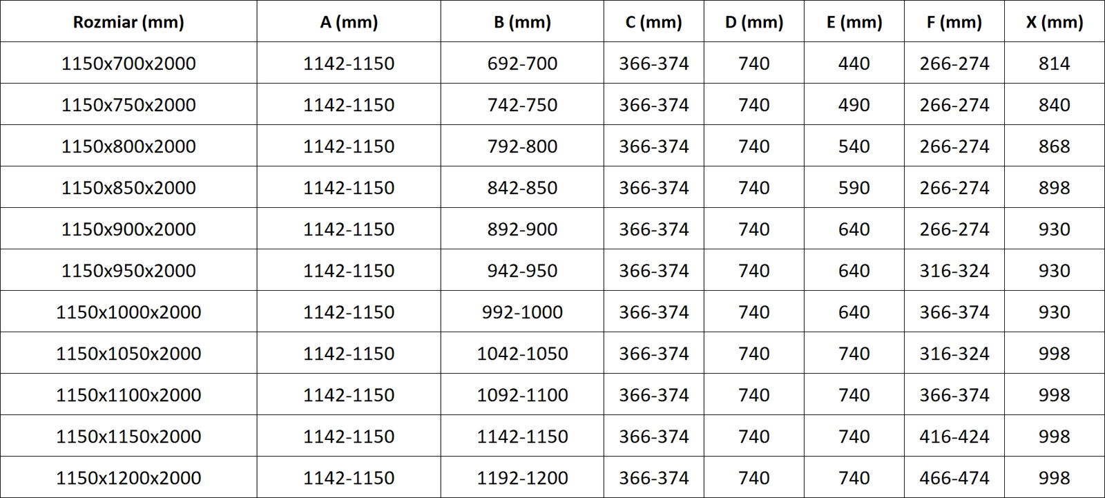 Rozmery: 115x100 cm (ľavé dvere 115 cm, pravé dvere 100 cm)