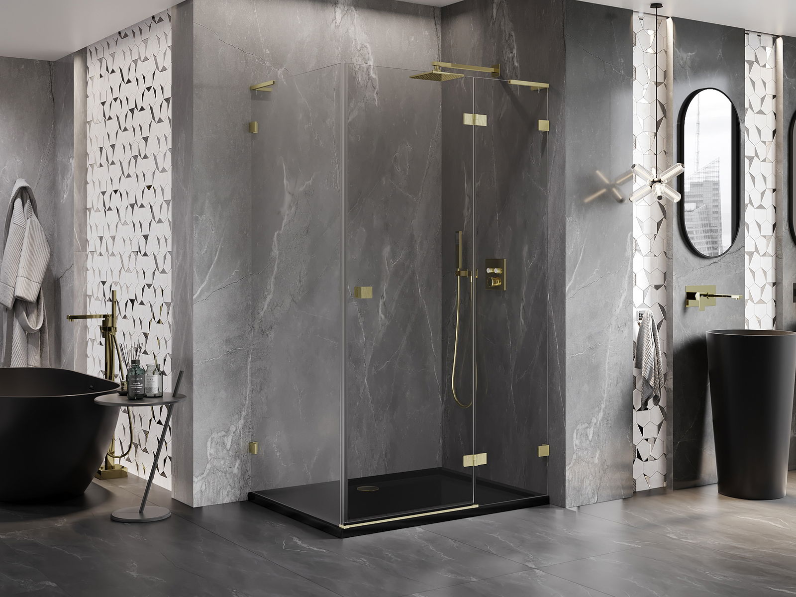 Mexen Lunar L pravý sprchový kút otvárací 95 x 70 cm, transparentný, zlatý kartáčovaný - 834L-095-070-55-00-P
