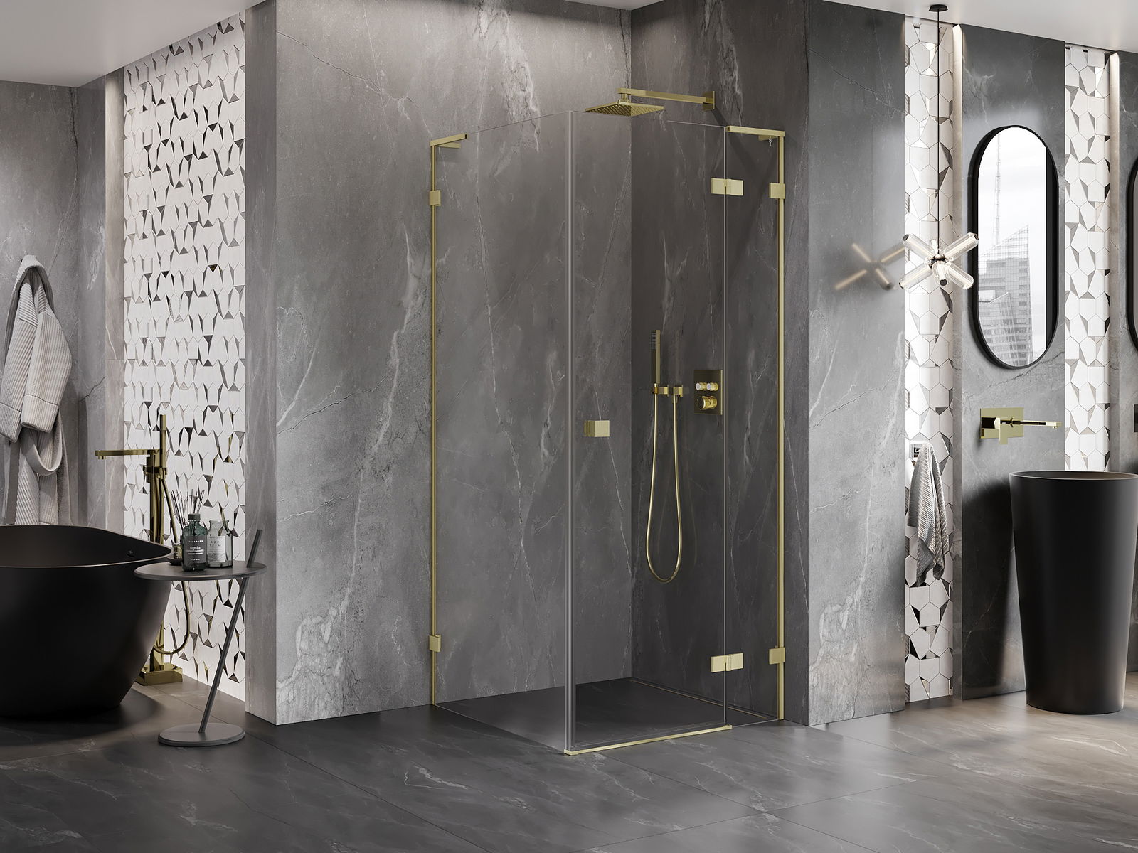 Mexen Lunar L sprchový kút sklopný pravý 100 x 100 cm, transparentný, zlatý brúsený - 834L-100-100-55-00-P