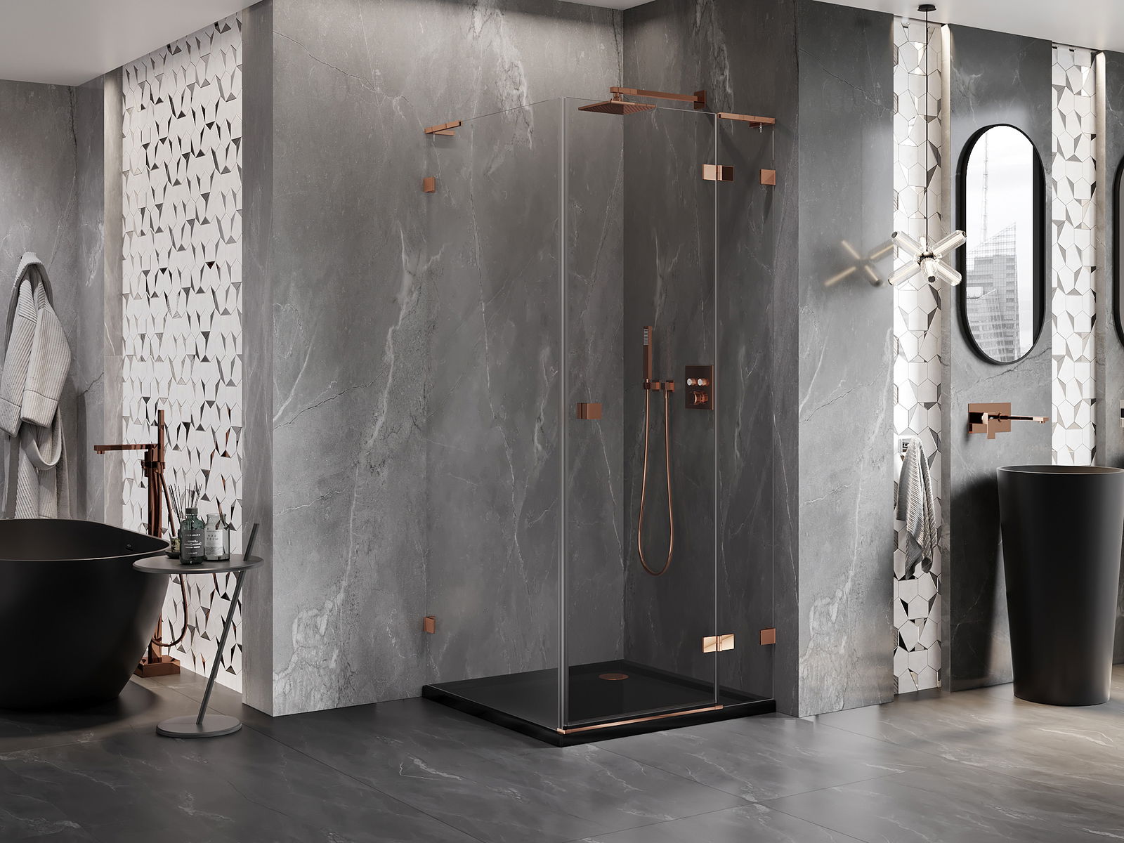 Mexen Lunar L pravá sprchová kabína 70 x 70 cm, transparentná, ružové zlato - 834L-070-070-60-00-P