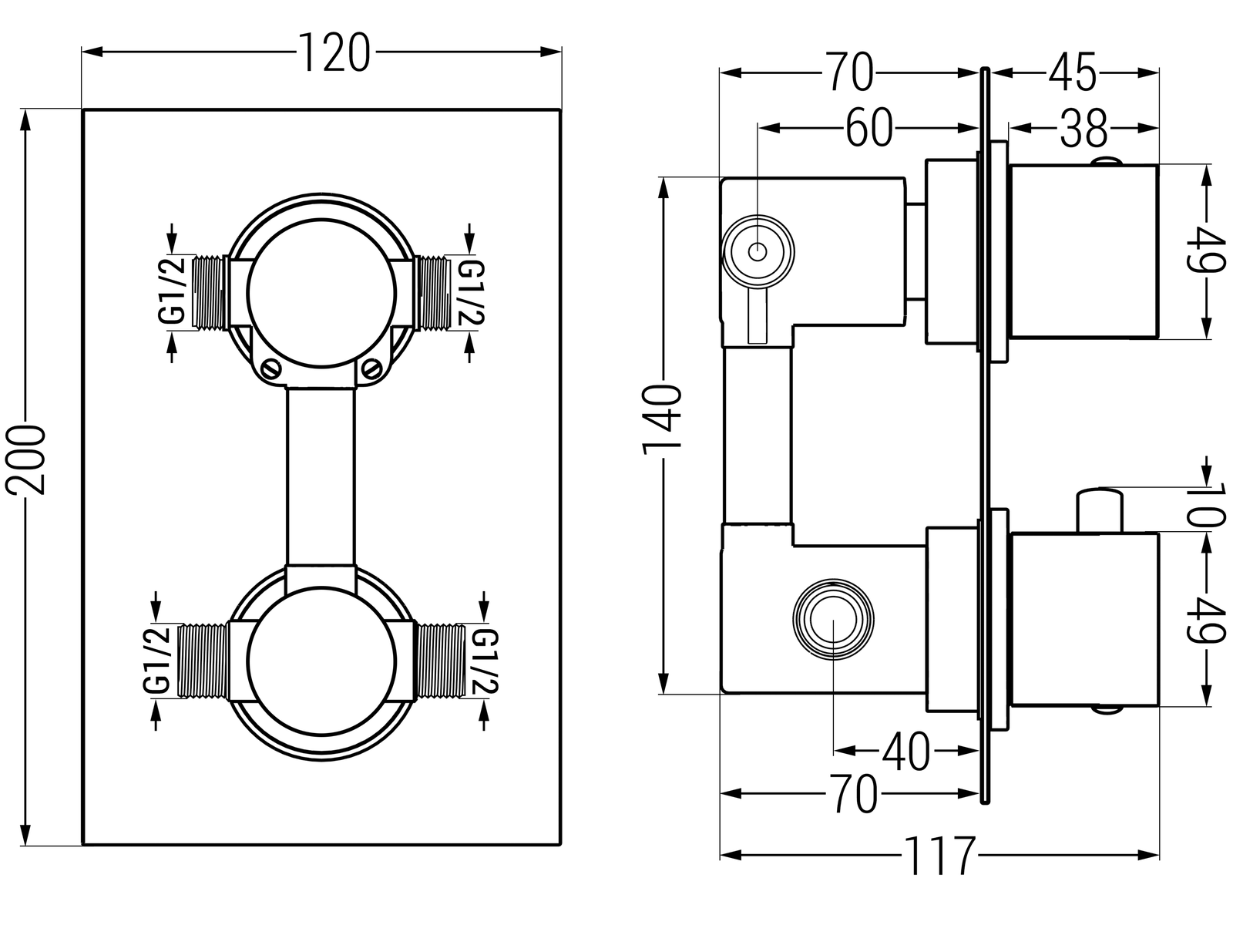 Pripojenie: 2x Vstup 1/2" a 2x výstup 1/2"