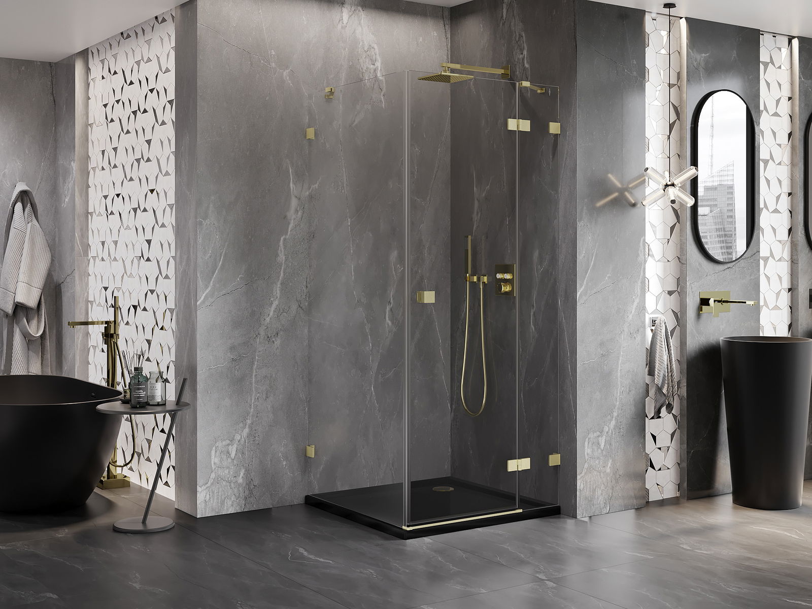 Svorky a závesy boli vyrobené z veľmi odolnej mosadze a navyše vytvárajú zarovnanú tabuľu skla. Je to vynikajúci výber, ktorý spája eleganciu, trvanlivosť a moderný dizajn. Vďaka takýmto riešeniam sprcha získa na estetike a zároveň uľahčujú udržiavanie čistoty.