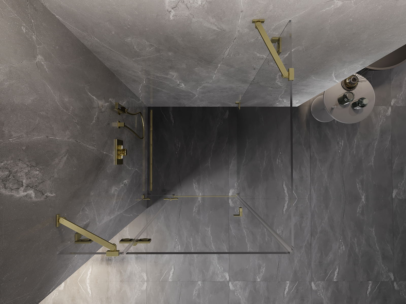 Mexen Lunar sprchovací kút, jednokrídlové dvere ľavé 100 x 100 cm, priehľadné, zlatá kartáčovaná - 834-100-100-55-00-L