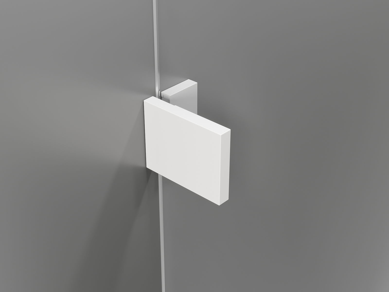 Praktická a pohodlná rukoväť je vyrobená z odolného a pevného kovu. Moderný tvar v kombinácii s povrchovou úpravou prispôsobenou farbe profilov dodáva celku moderný a štýlový vzhľad, zdôrazňujúc estetiku každej kúpeľne.
