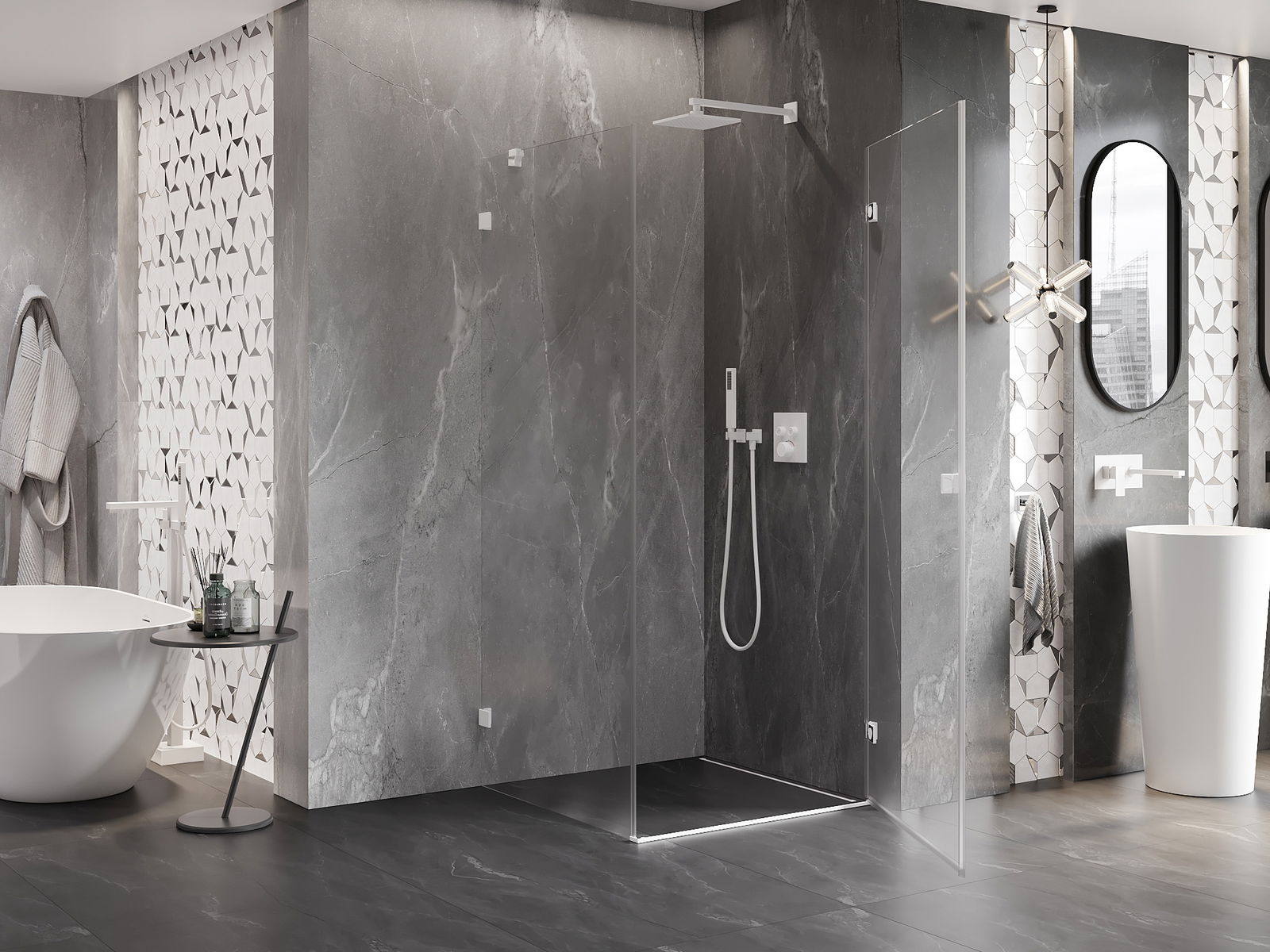 Svorky sú vyrobené z veľmi odolnej mosadze a navyše vytvárajú zapustenú tabuľu skla. Je to vynikajúca voľba, ktorá spája eleganciu, odolnosť a moderný dizajn. Vďaka takýmto riešeniam získa sprcha na estetike a zároveň uľahčuje údržbu čistoty.