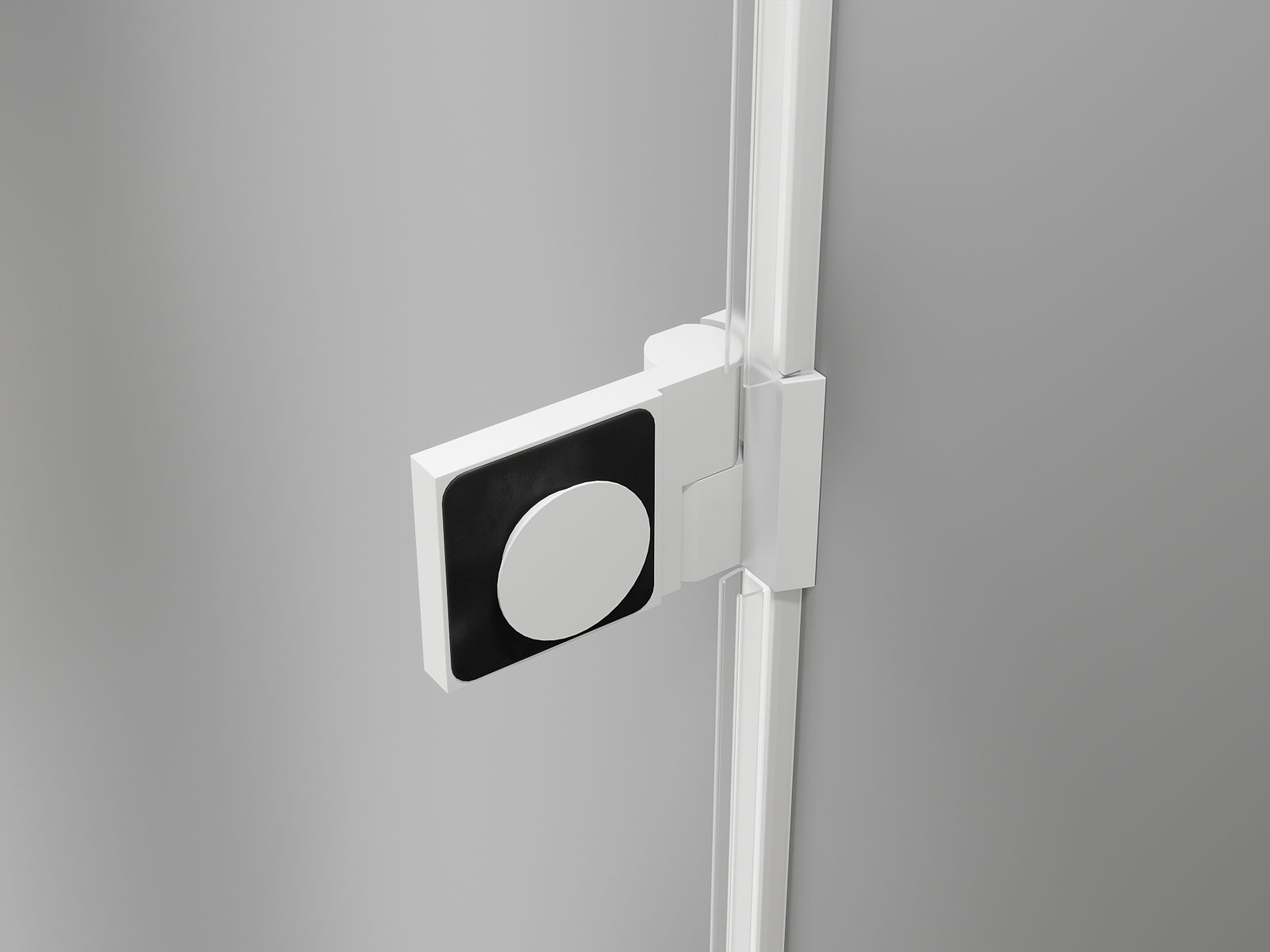 Praktická a pohodlná rukoväť je vyrobená z odolného a pevného kovu. Moderný tvar v kombinácii s povrchovou úpravou prispôsobenou farbe profilov dodáva celku moderný a štýlový vzhľad, zdôrazňujúc estetiku každej kúpeľne.