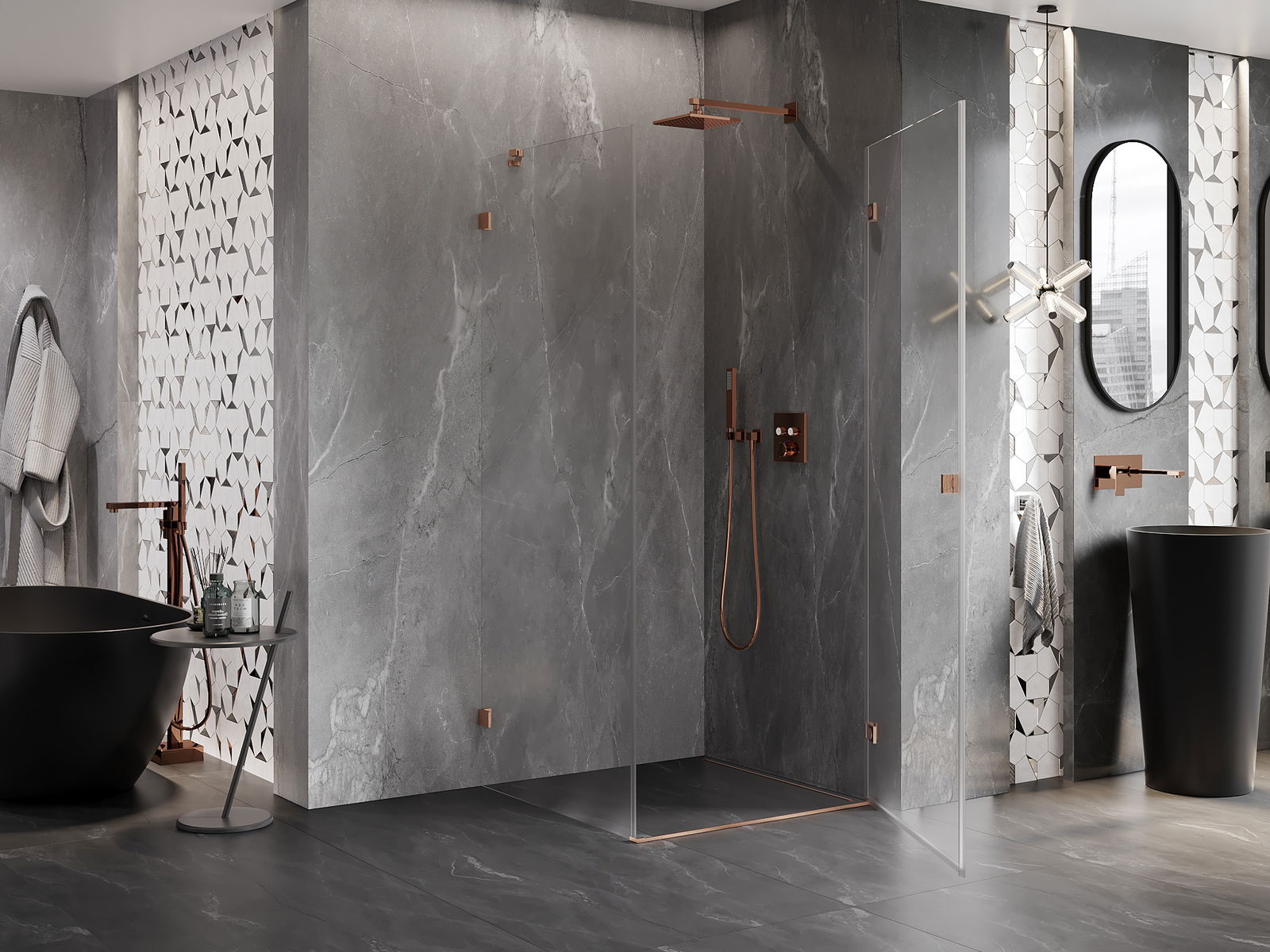 Svorky sú vyrobené z veľmi odolnej mosadze a navyše vytvárajú zapustenú tabuľu skla. Je to vynikajúca voľba, ktorá spája eleganciu, odolnosť a moderný dizajn. Vďaka takýmto riešeniam získa sprcha na estetike a zároveň uľahčuje údržbu čistoty.
