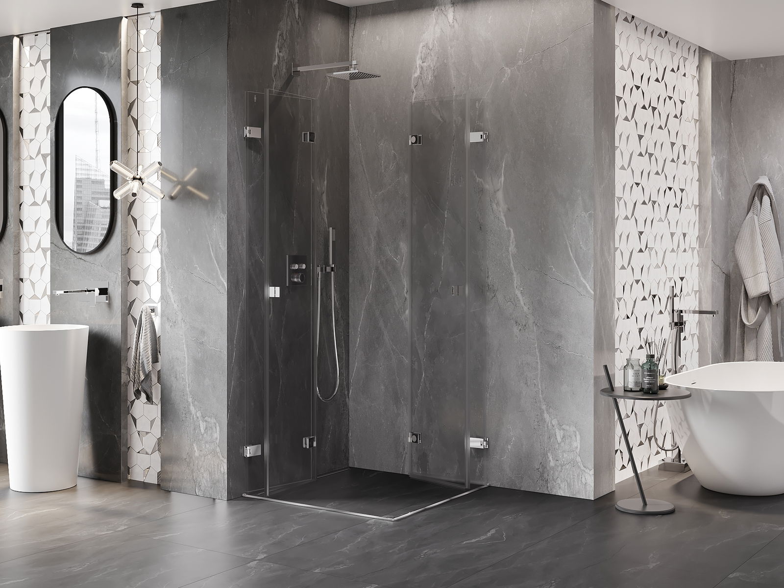 Možnosť skladania dverí, ako smerom von, tak aj smerom dnu, umožňuje získať viac priestoru počas nepoužívania sprchy. Je to ideálne riešenie pre menšie kúpeľne, maximálne využívajúce dostupnú plochu.
