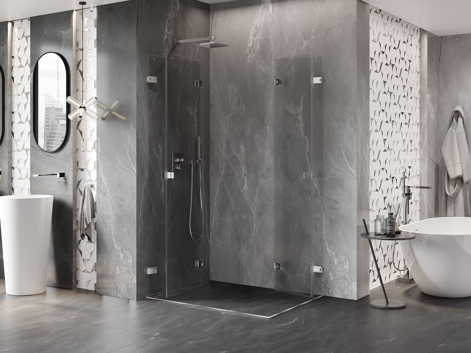 Možnosť skladania dverí, ako smerom von, tak aj smerom dnu, umožňuje získať viac priestoru počas nepoužívania sprchy. Je to ideálne riešenie pre menšie kúpeľne, maximálne využívajúce dostupnú plochu.