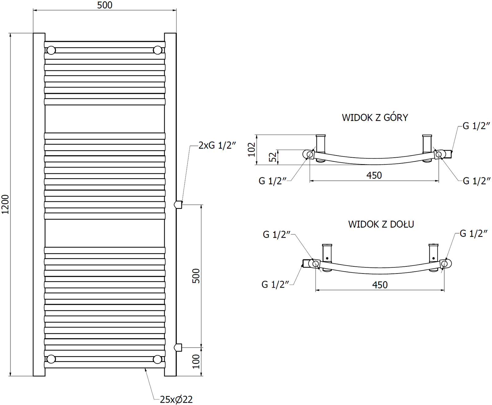 - 2xG ½″ bočné z pravej strany