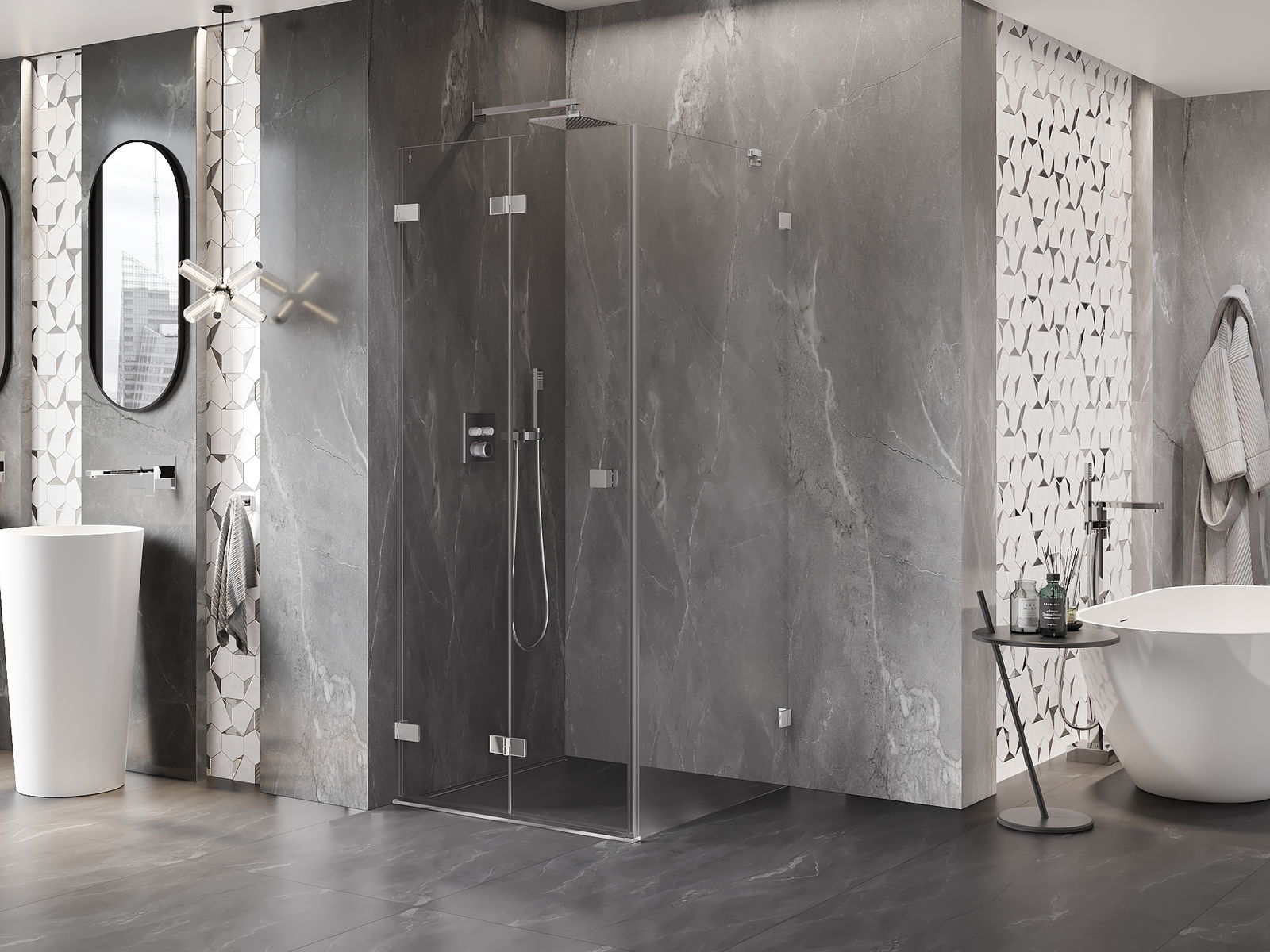 Možnosť skladania dverí, ako smerom von, tak aj smerom dnu, umožňuje získať viac priestoru počas nepoužívania sprchy. Je to ideálne riešenie pre menšie kúpeľne, maximálne využívajúce dostupnú plochu.