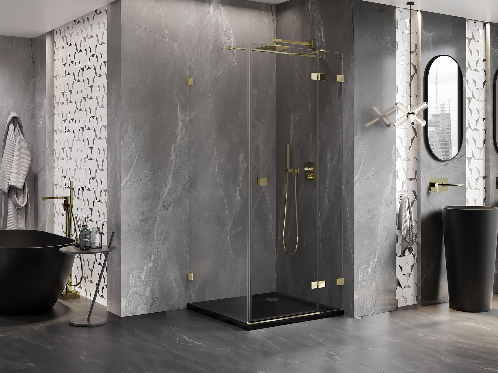 Svorky a závesy boli vyrobené z veľmi odolnej mosadze a navyše vytvárajú zarovnanú tabuľu skla. Je to vynikajúci výber, ktorý spája eleganciu, trvanlivosť a moderný dizajn. Vďaka takýmto riešeniam sprcha získa na estetike a zároveň uľahčujú udržiavanie čistoty.