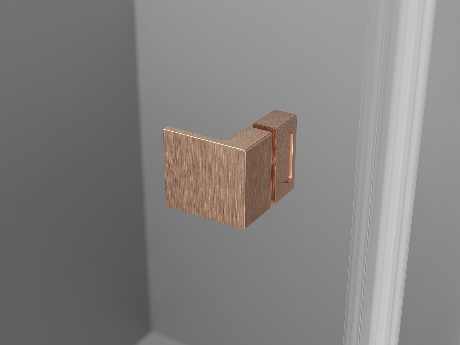 Praktická a pohodlná rukoväť je vyrobená z odolného a pevného kovu. Moderný tvar v kombinácii s povrchovou úpravou prispôsobenou farbe profilov dodáva celku moderný a štýlový vzhľad, zdôrazňujúc estetiku každej kúpeľne.