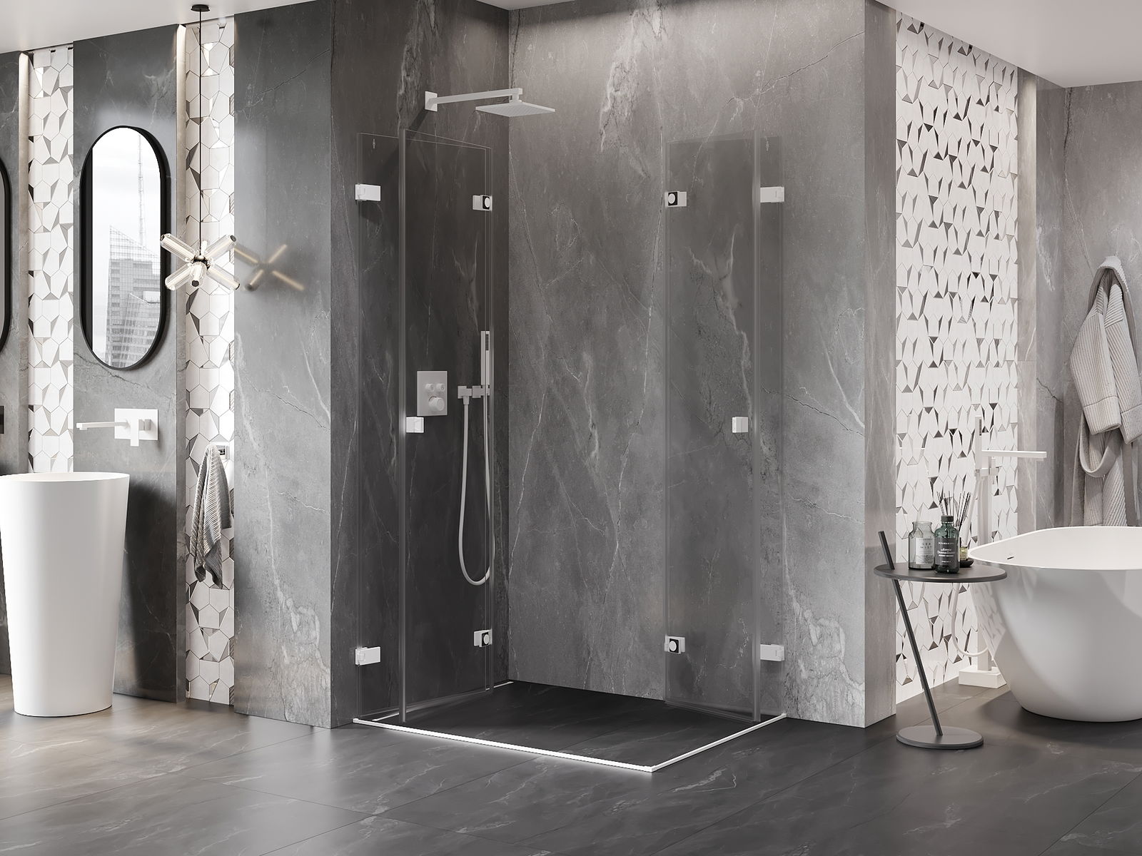 Možnosť skladania dverí, ako smerom von, tak aj smerom dnu, umožňuje získať viac priestoru počas nepoužívania sprchy. Je to ideálne riešenie pre menšie kúpeľne, maximálne využívajúce dostupnú plochu.