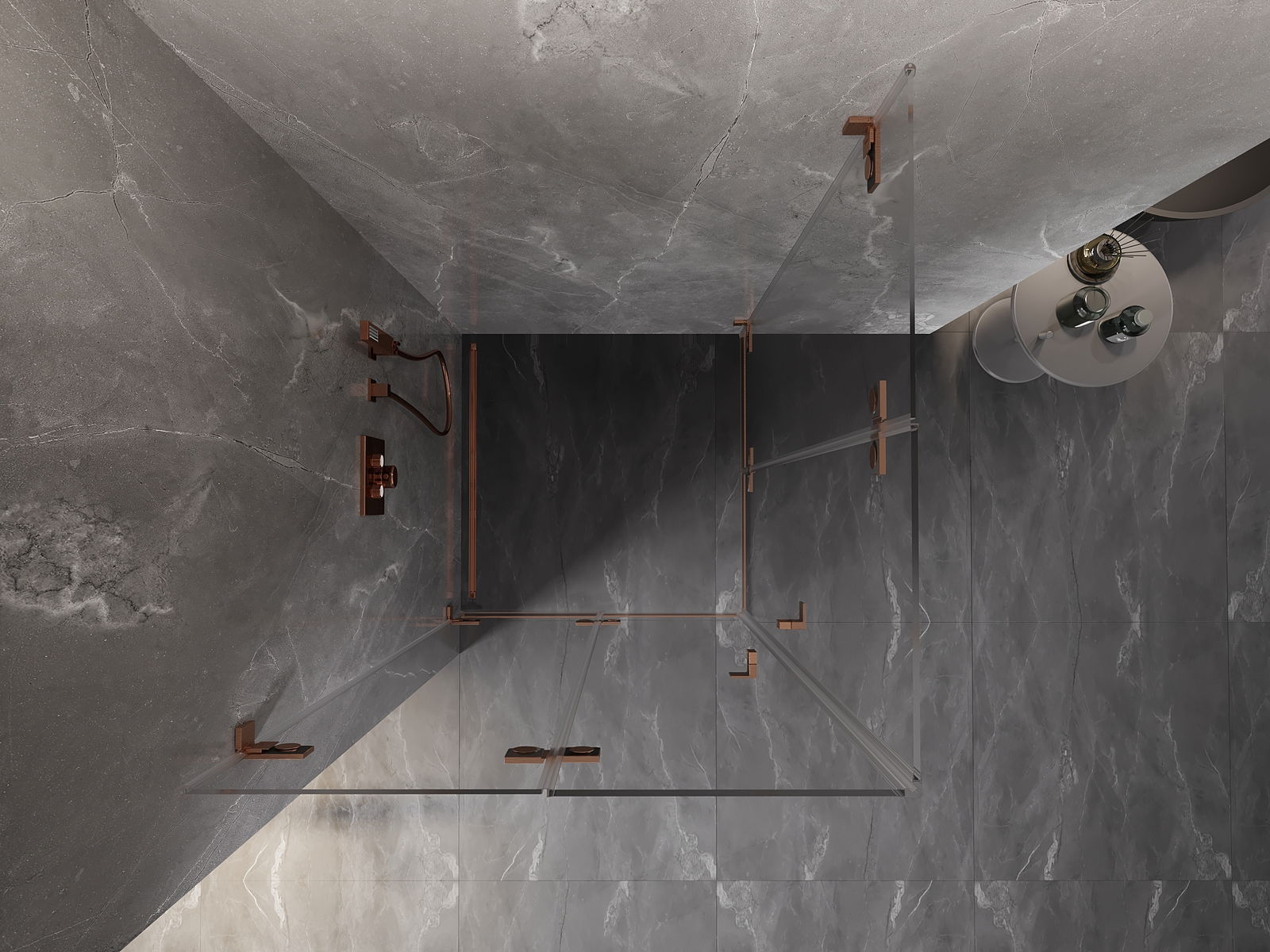 Mexen Lunar-F Duo skladacia sprchová kabína 95 x 95 cm, transparentná, brúsená meď - 836-095L-095P-65-00