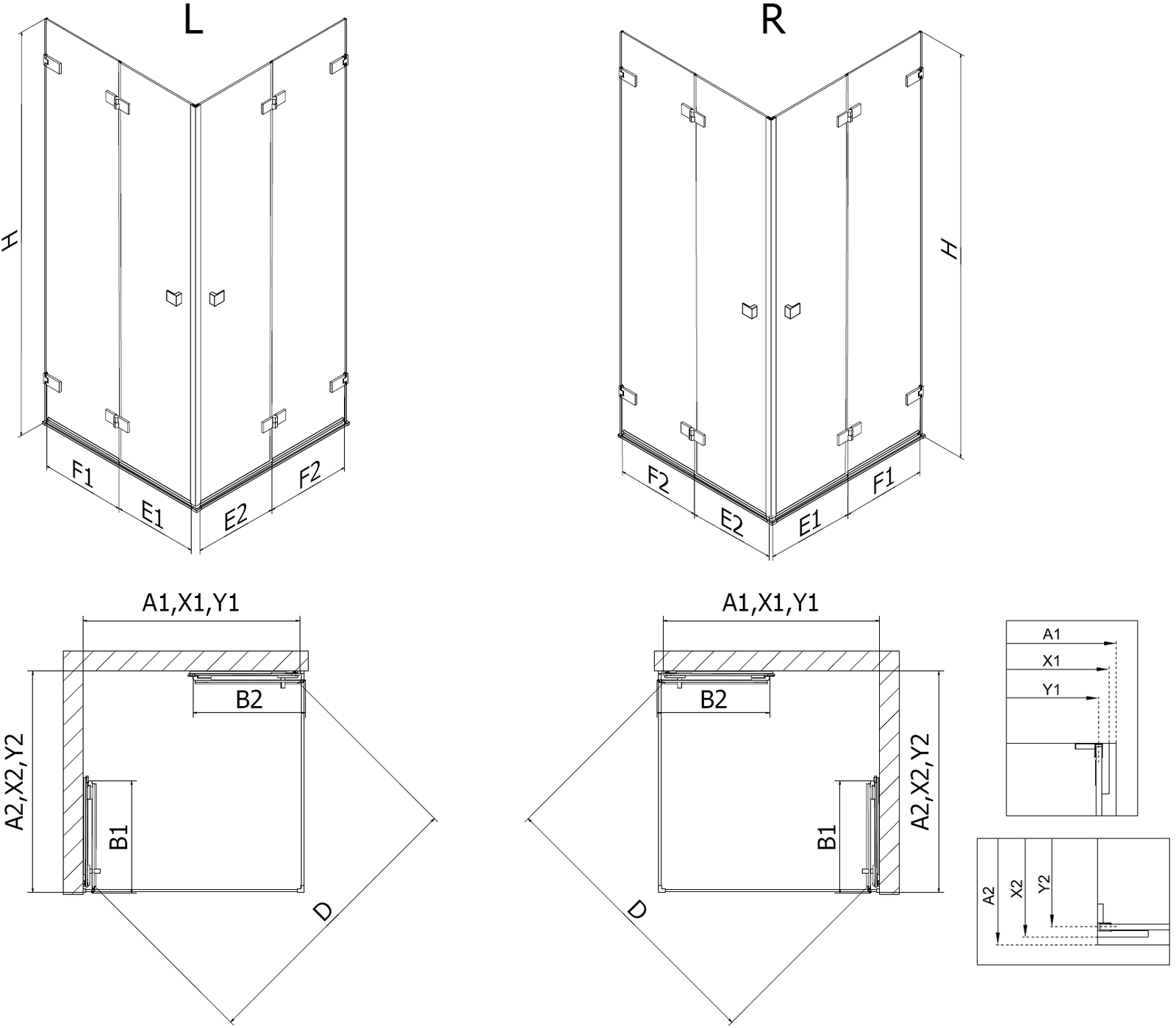 Možnosť skladania dverí, ako smerom von, tak aj smerom dnu, umožňuje získať viac priestoru počas nepoužívania sprchy. Je to ideálne riešenie pre menšie kúpeľne, maximálne využívajúce dostupnú plochu.
