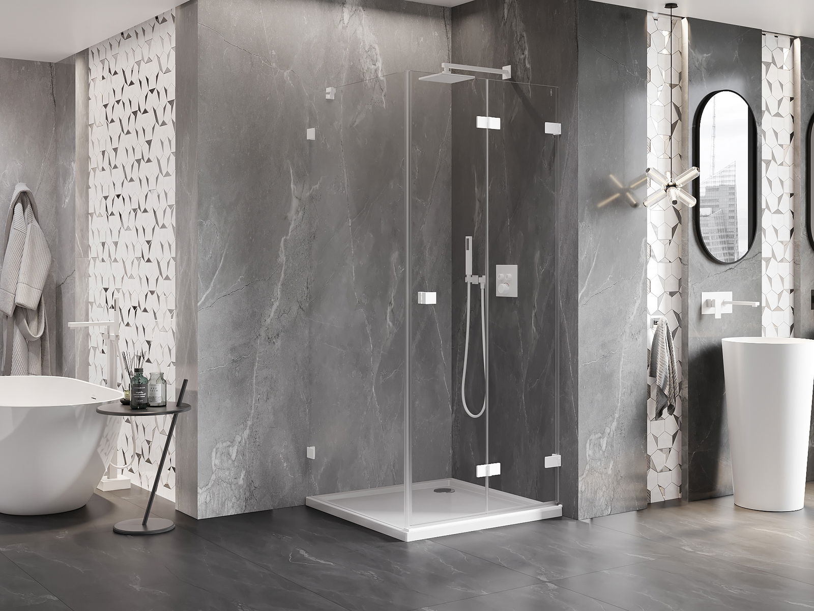 Možnosť skladania dverí, ako smerom von, tak aj smerom dnu, umožňuje získať viac priestoru počas nepoužívania sprchy. Je to ideálne riešenie pre menšie kúpeľne, maximálne využívajúce dostupnú plochu.