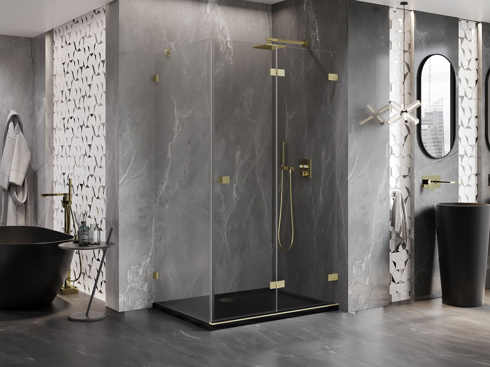 Svorky a závesy boli vyrobené z veľmi odolnej mosadze a navyše vytvárajú zarovnanú tabuľu skla. Je to vynikajúci výber, ktorý spája eleganciu, trvanlivosť a moderný dizajn. Vďaka takýmto riešeniam sprcha získa na estetike a zároveň uľahčujú udržiavanie čistoty.