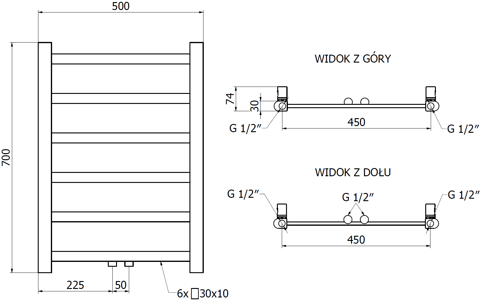- 4xG ½″ zhora a zdola z pravej alebo ľavej strany