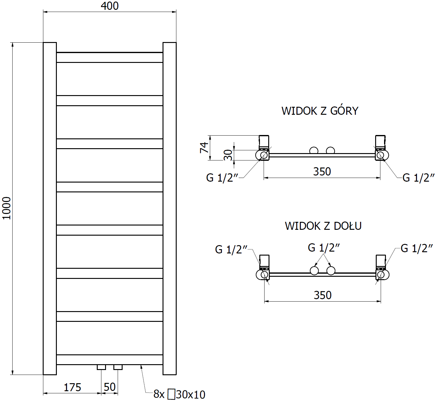 - 4xG ½″ zhora a zdola z pravej alebo ľavej strany
