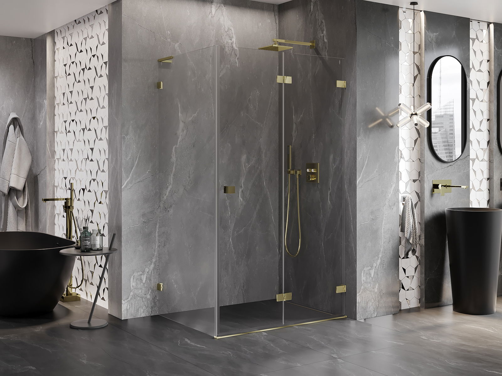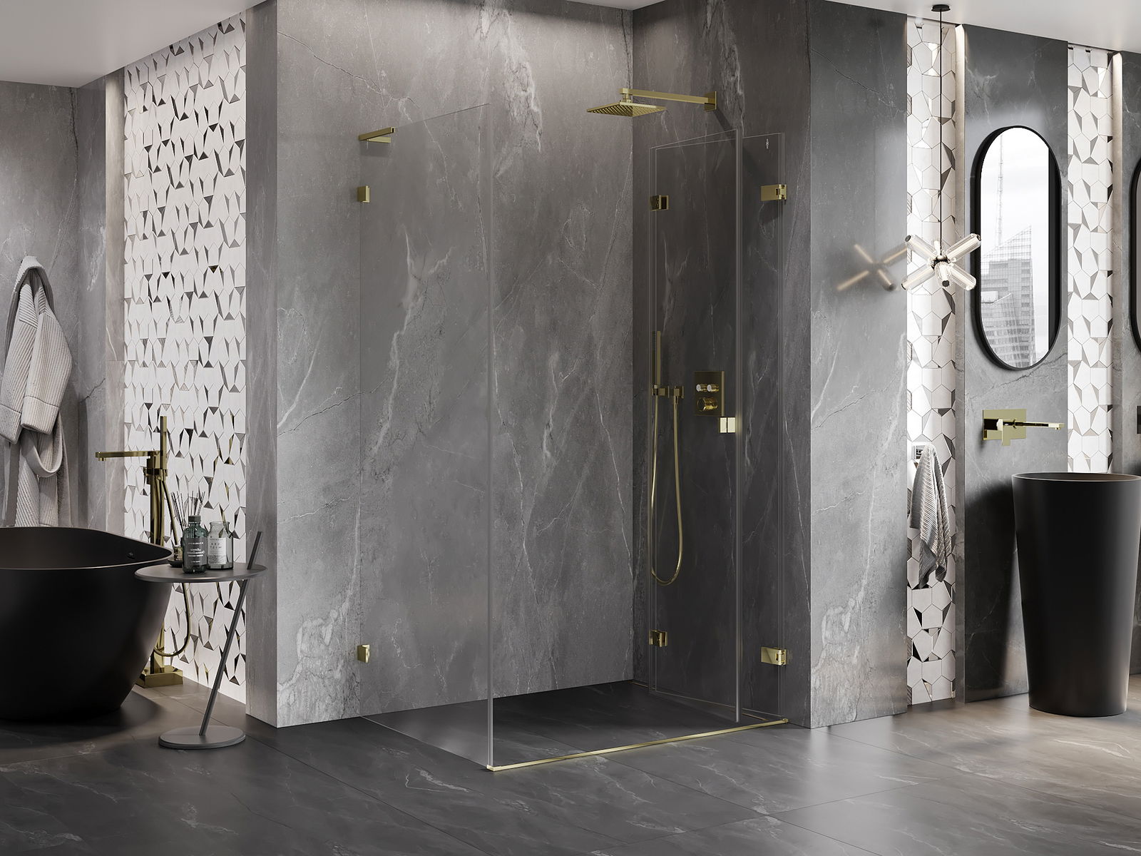 Svorky a závesy boli vyrobené z veľmi odolnej mosadze a navyše vytvárajú zarovnanú tabuľu skla. Je to vynikajúci výber, ktorý spája eleganciu, trvanlivosť a moderný dizajn. Vďaka takýmto riešeniam sprcha získa na estetike a zároveň uľahčujú udržiavanie čistoty.
