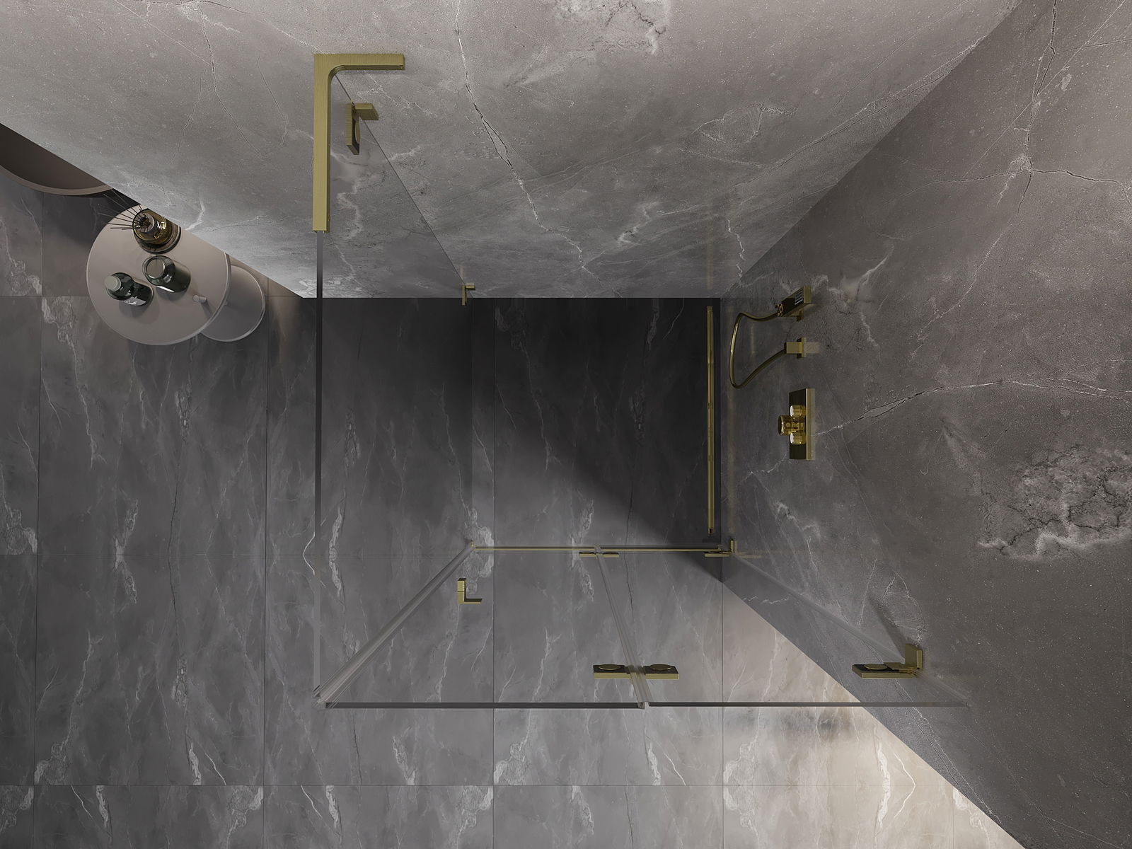 Mexen Lunar-F L skladacia sprchová kabína pravá 70 x 70 cm, transparentná, zlatá brúsená - 836L-070-070-55-00-P