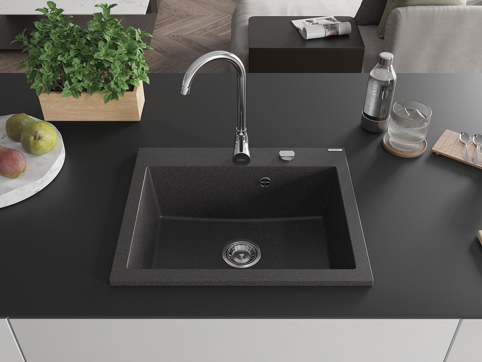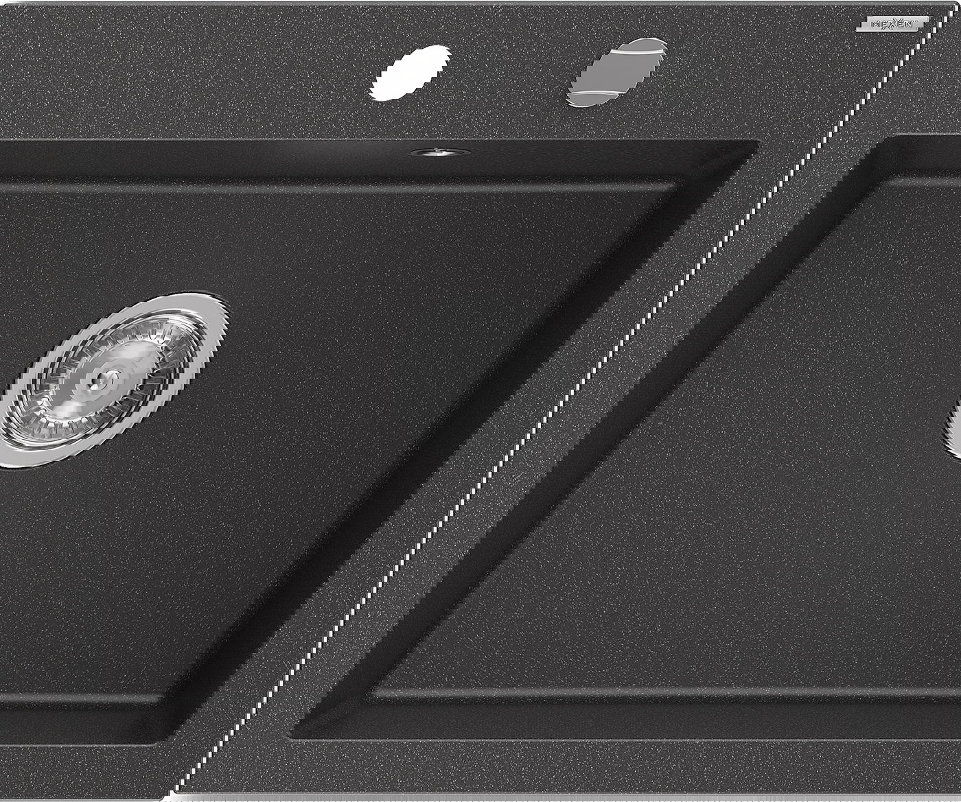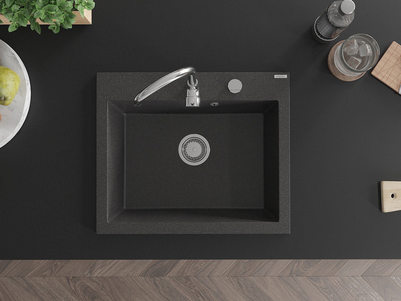Mexen Elix žulový kuchynský drez 1-komorový 600 x 500 mm, čierny škvrnitý, sifón chróm - 6525601005-76