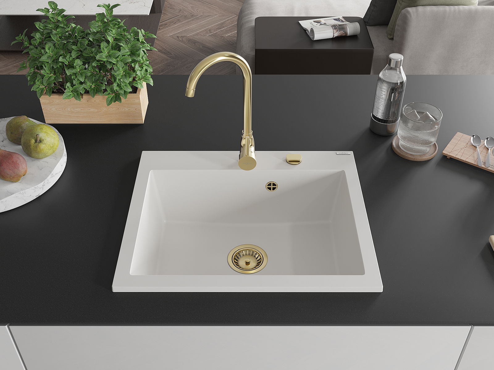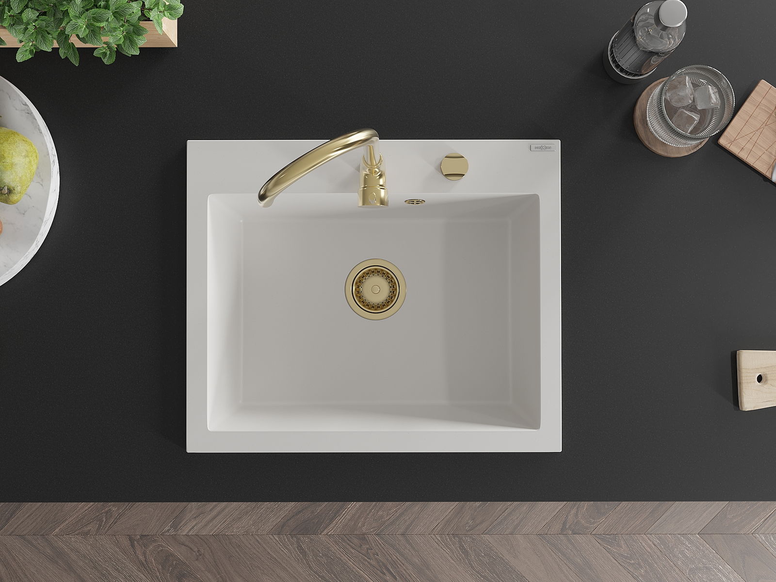 Drez má predfrézovaný otvor s priemerom 35 mm na samostatné prerazenie. Môže sa využiť napríklad na montáž dávkovača na tekutinu, ktorý eliminuje prítomnosť plastových fliaš v kuchyni a pridáva jej elegantné dokončenie.