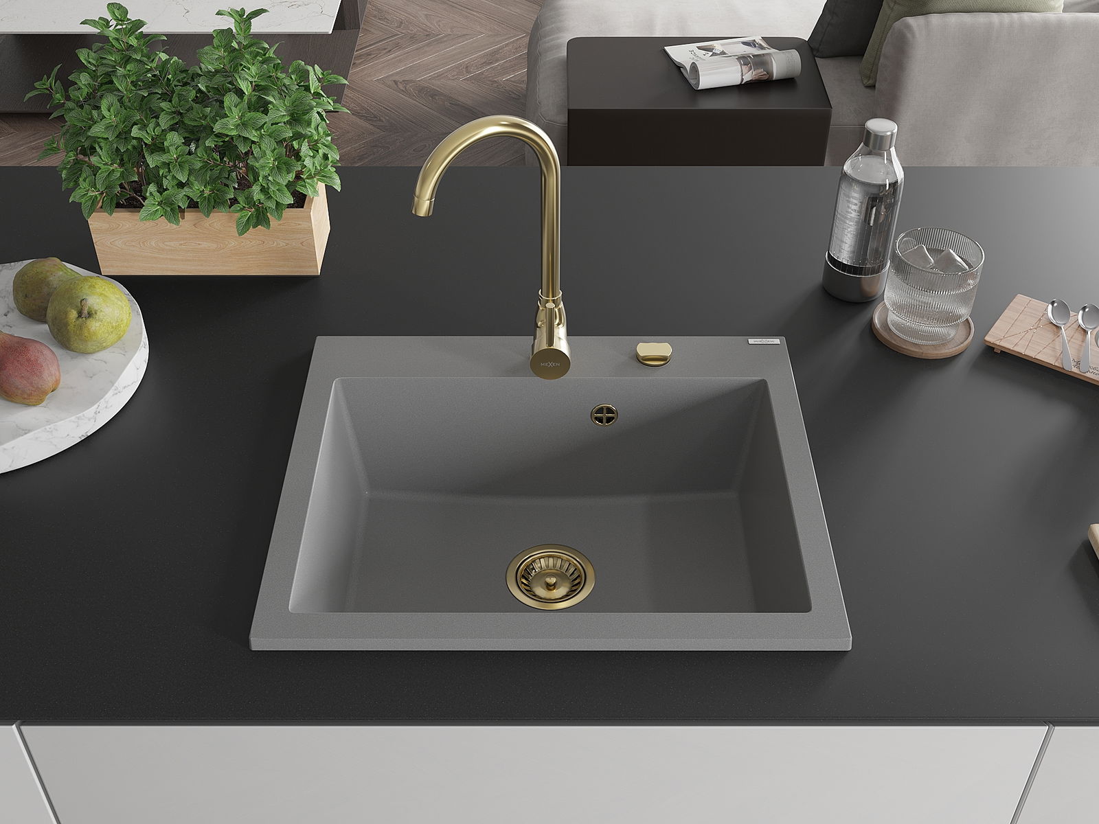 Povrch kuchynského drezu je odolný voči škvrnám a zafarbeniu, vďaka čomu sa ľahko udržiava a zachováva svoju farbu počas dlhého obdobia používania. Estetický a praktický doplnok pre každú kuchyňu.