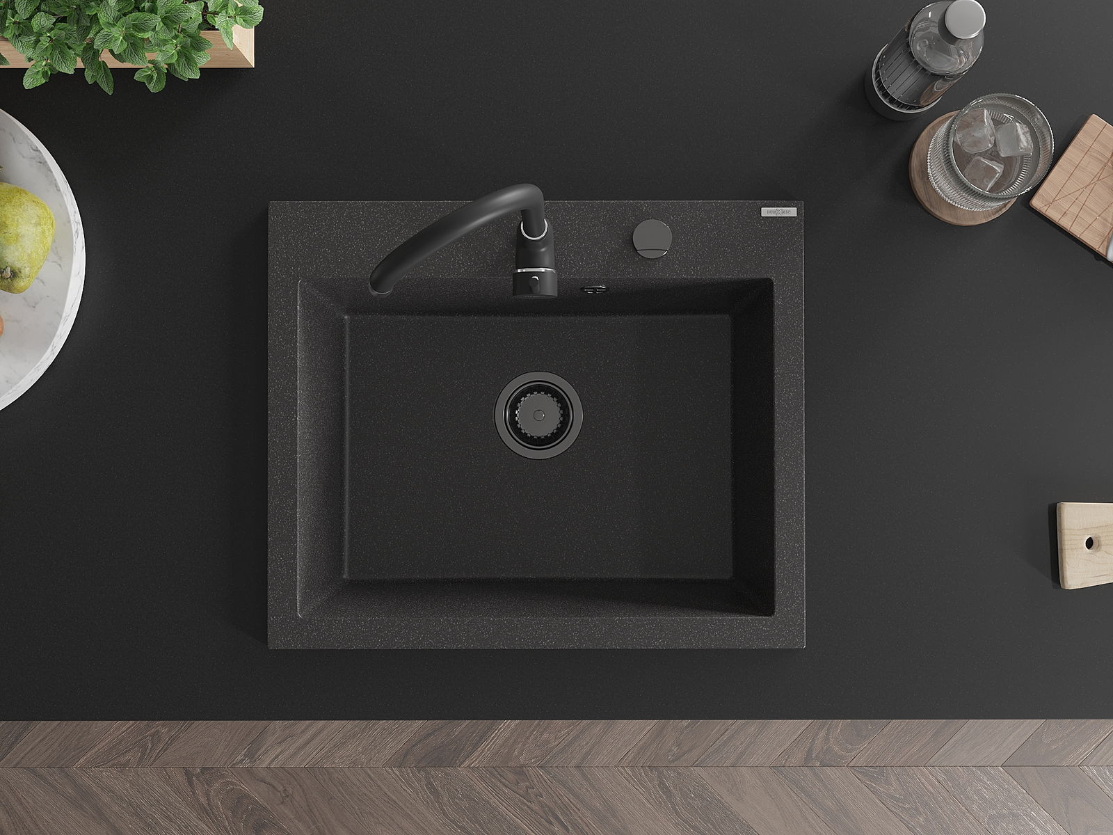 Mexen Elix granitový drez s 1 komorou 600 x 500 mm, čierny škvrnitý, sifón čierny - 6525601005-76-B