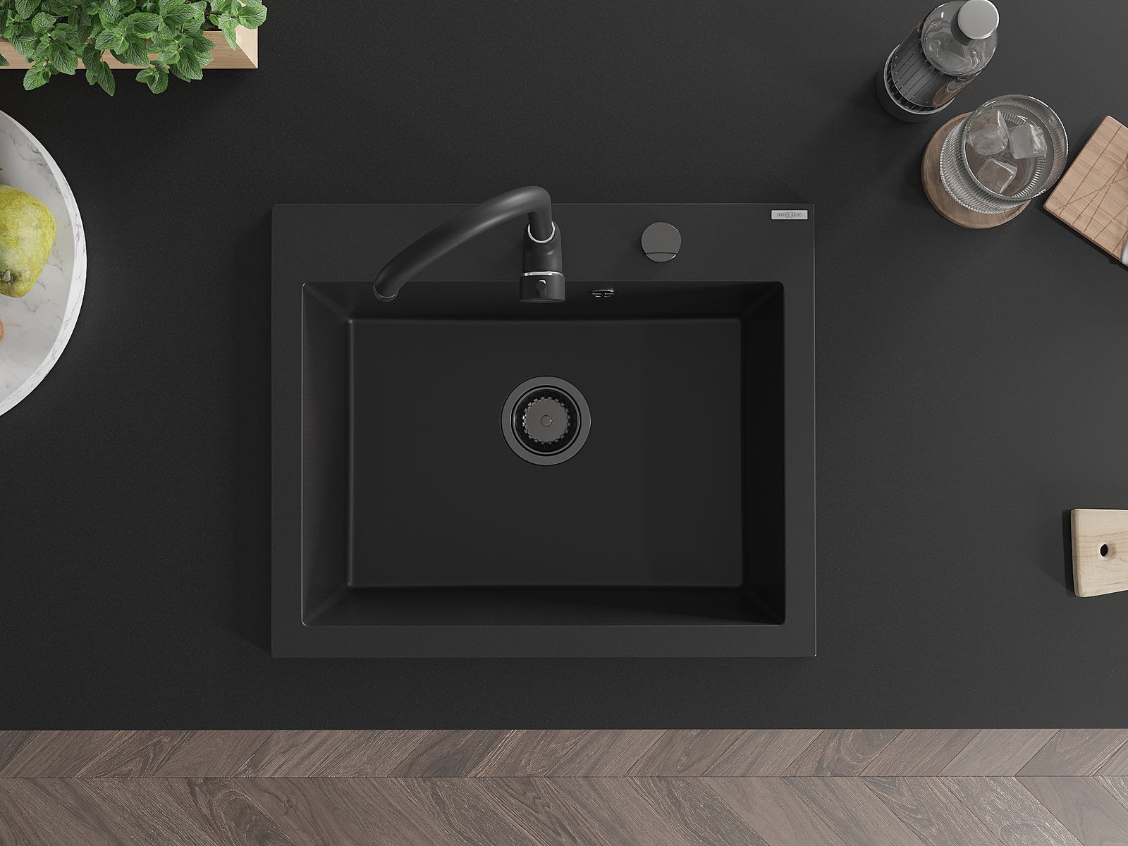 Povrch kuchynského drezu je odolný voči škvrnám a zafarbeniu, vďaka čomu sa ľahko udržiava a zachováva svoju farbu počas dlhého obdobia používania. Estetický a praktický doplnok pre každú kuchyňu.