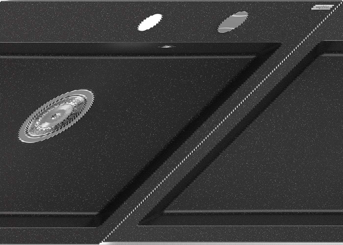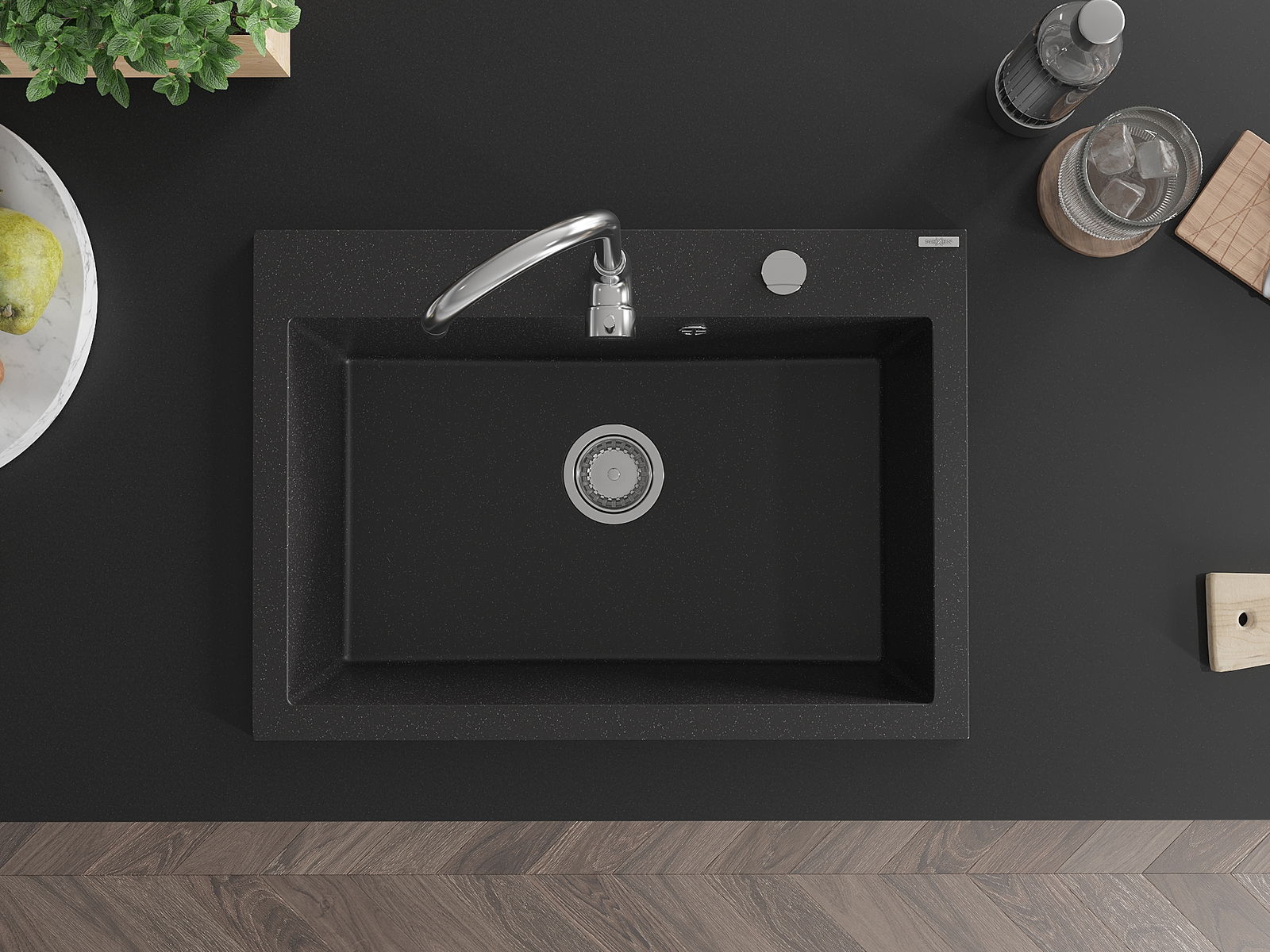 Mexen Elix žulový kuchynský drez s 1 komorou 700 x 500 mm, čierny/strieborný metalický, chrómový sifón - 6526701005-73