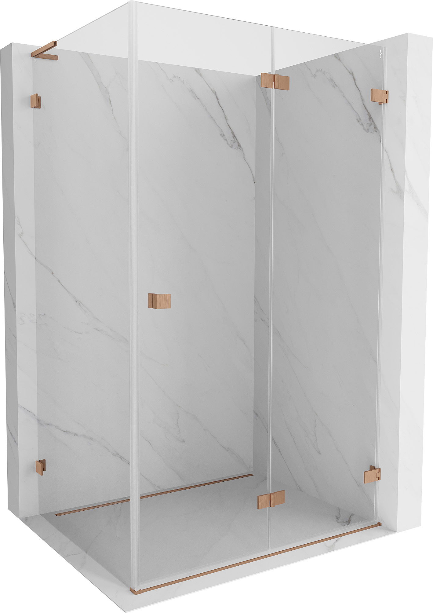 Mexen Lunar-F L skladacia sprchová kabína pravá 90 x 80 cm, transparentná, brúsená meď - 836L-090-080-65-00-P