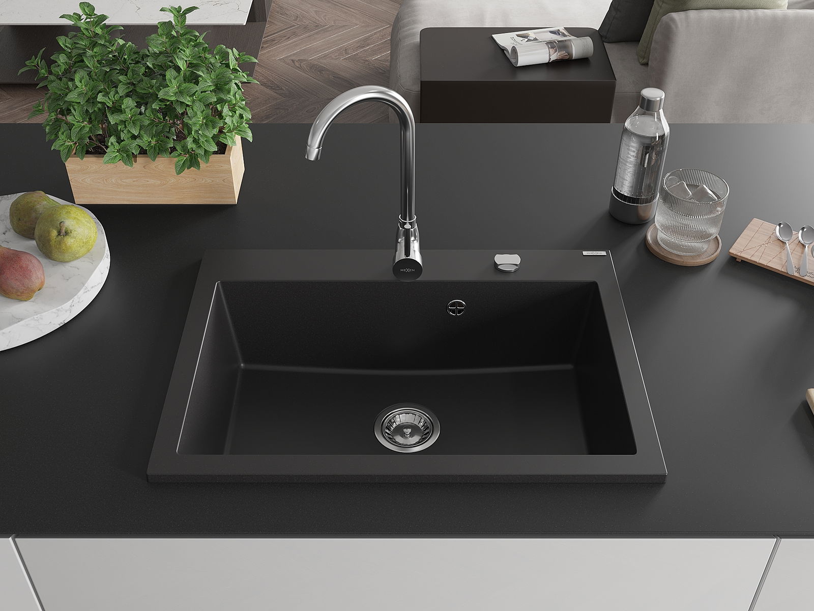 Drez má predfrézovaný otvor s priemerom 35 mm na samostatné prerazenie. Môže sa využiť napríklad na montáž dávkovača na tekutinu, ktorý eliminuje prítomnosť plastových fliaš v kuchyni a pridáva jej elegantné dokončenie.