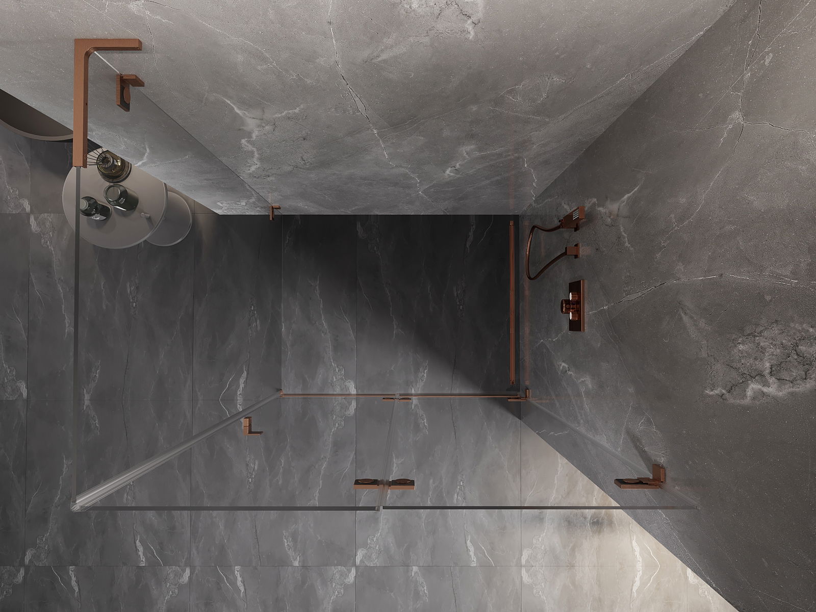 Mexen Lunar-F L skladacia sprchová kabína pravá 95 x 80 cm, priehľadná, brúsená meď - 836L-095-080-65-00-P