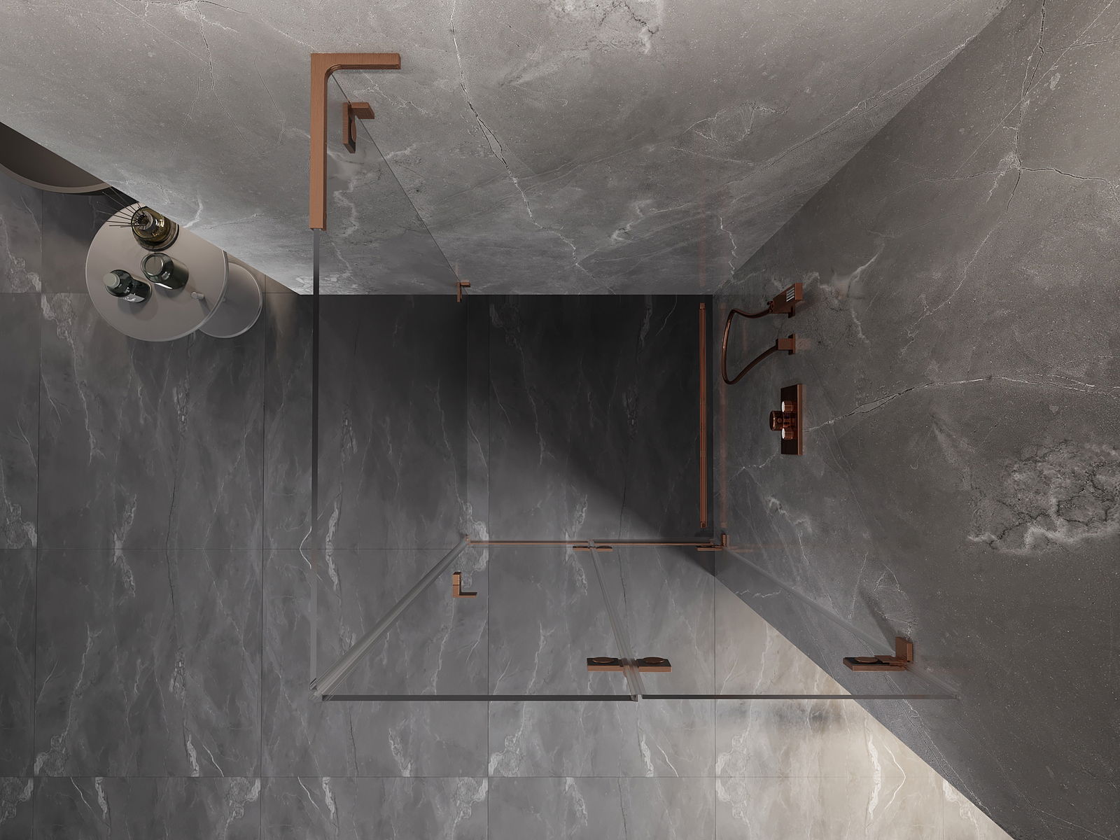 Mexen Lunar-F L sklopná sprchová kabína pravá 90 x 90 cm, transparentná, brúsená meď - 836L-090-090-65-00-P
