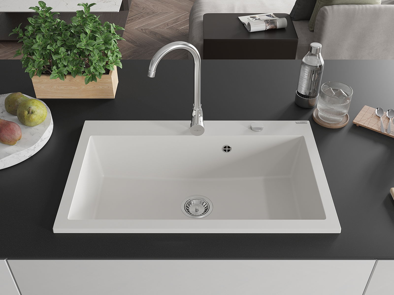 Drez má predfrézovaný otvor s priemerom 35 mm na samostatné prerazenie. Môže sa využiť napríklad na montáž dávkovača na tekutinu, ktorý eliminuje prítomnosť plastových fliaš v kuchyni a pridáva jej elegantné dokončenie.