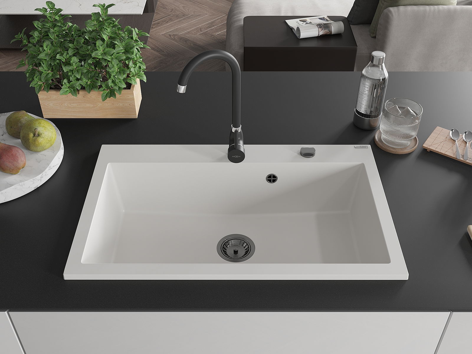 Drez má predfrézovaný otvor s priemerom 35 mm na samostatné prerazenie. Môže sa využiť napríklad na montáž dávkovača na tekutinu, ktorý eliminuje prítomnosť plastových fliaš v kuchyni a pridáva jej elegantné dokončenie.
