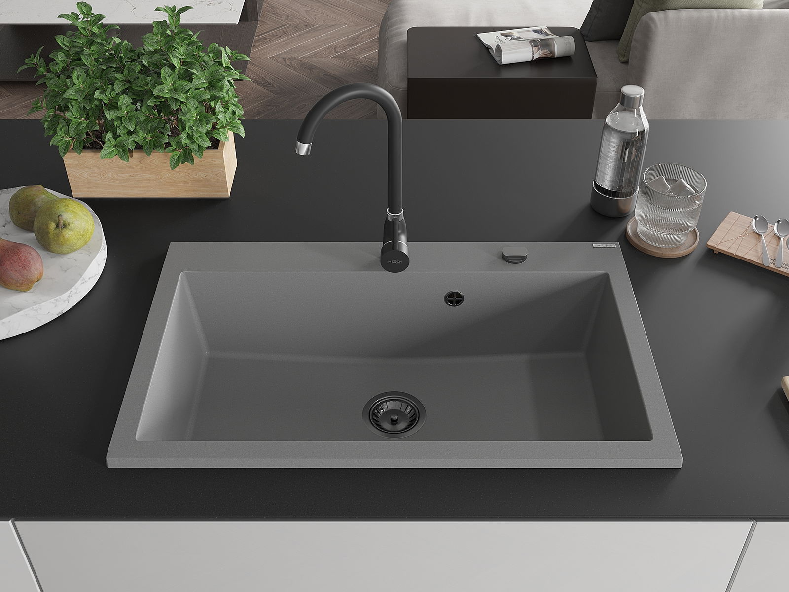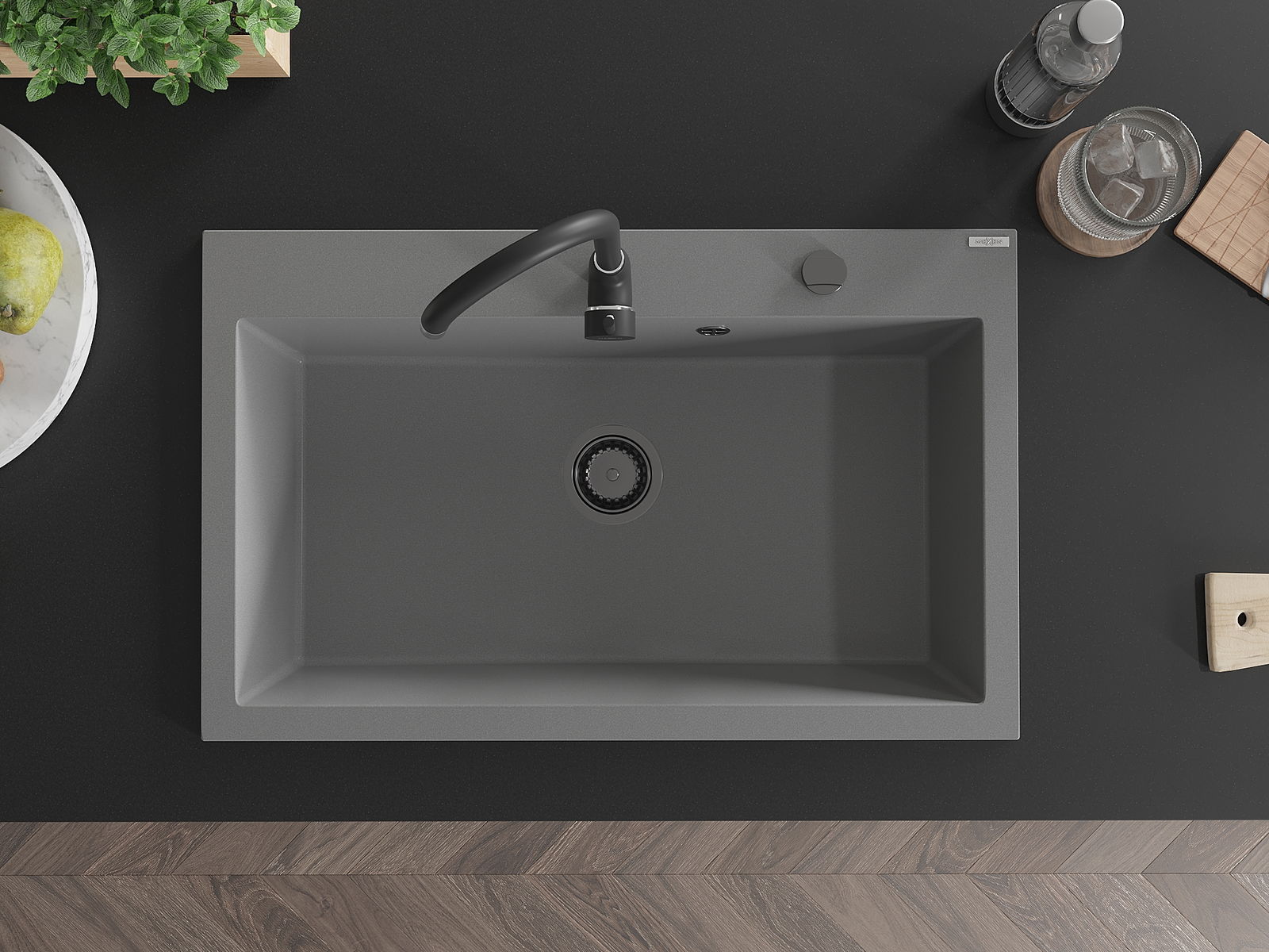 Povrch kuchynského drezu je odolný voči škvrnám a zafarbeniu, vďaka čomu sa ľahko udržiava a zachováva svoju farbu počas dlhého obdobia používania. Estetický a praktický doplnok pre každú kuchyňu.