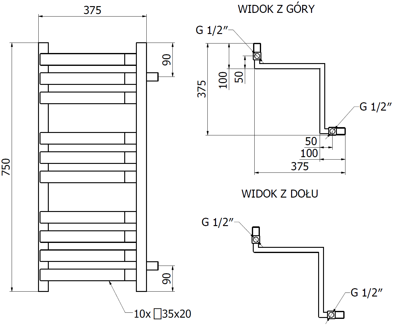 - 4xG ½″ zhora alebo zdola z pravej alebo ľavej strany