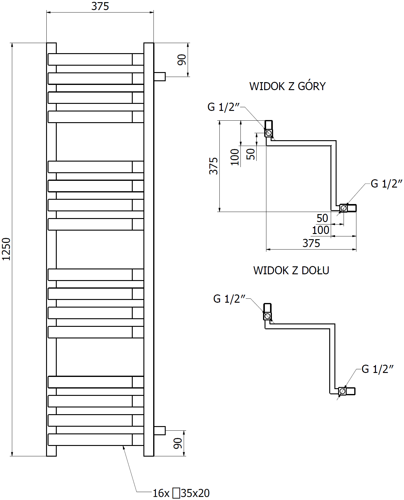 - 4xG ½″ zhora a zdola z pravej alebo ľavej strany